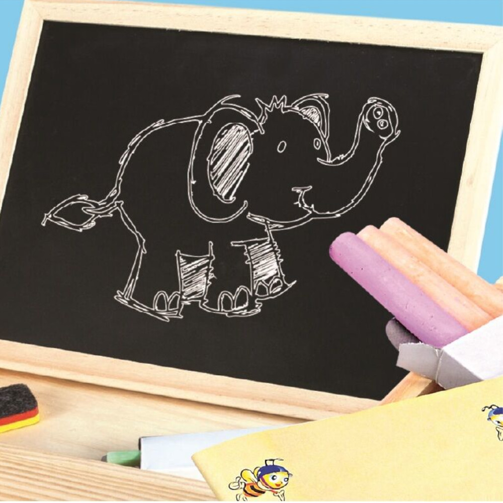 Objevte kouzlo venkova s kreativní magnetickou sadou! Magnetická tabulka je oboustranně využitelná. Na bílou magnetickou stranu lze psát fixem a přichytávat tematické postavičky, zvířátka, květiny a všechno, co je spojeno s životem na farmě. Na břidlicovou stranu se píše křídou, kterou lze snadno smazat pomocí plstěné houbičky na fixu. Děti mohou tvořit podle přiložené předlohy nebo si mohou sestavovat vlastní farmářské příběhy. Učí se, jak to na farmě chodí, poznávají tvary a barvy a rozvíjejí fantazii i jemnou motoriku. Všechny části jsou uloženy v dřevěné krabičce, která je lehce přenosná. Obsah balení je oboustranná tabulka v dřevěném boxu, 3 křídy, fix s plstěnou houbičkou, magnetky, předloha.