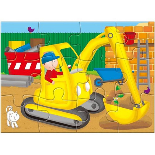 Jednotlivé skládačky jsou složeny ze čtyř, šesti, osmi a dvanácti dílků. Baleno v praktickém kufříku.
