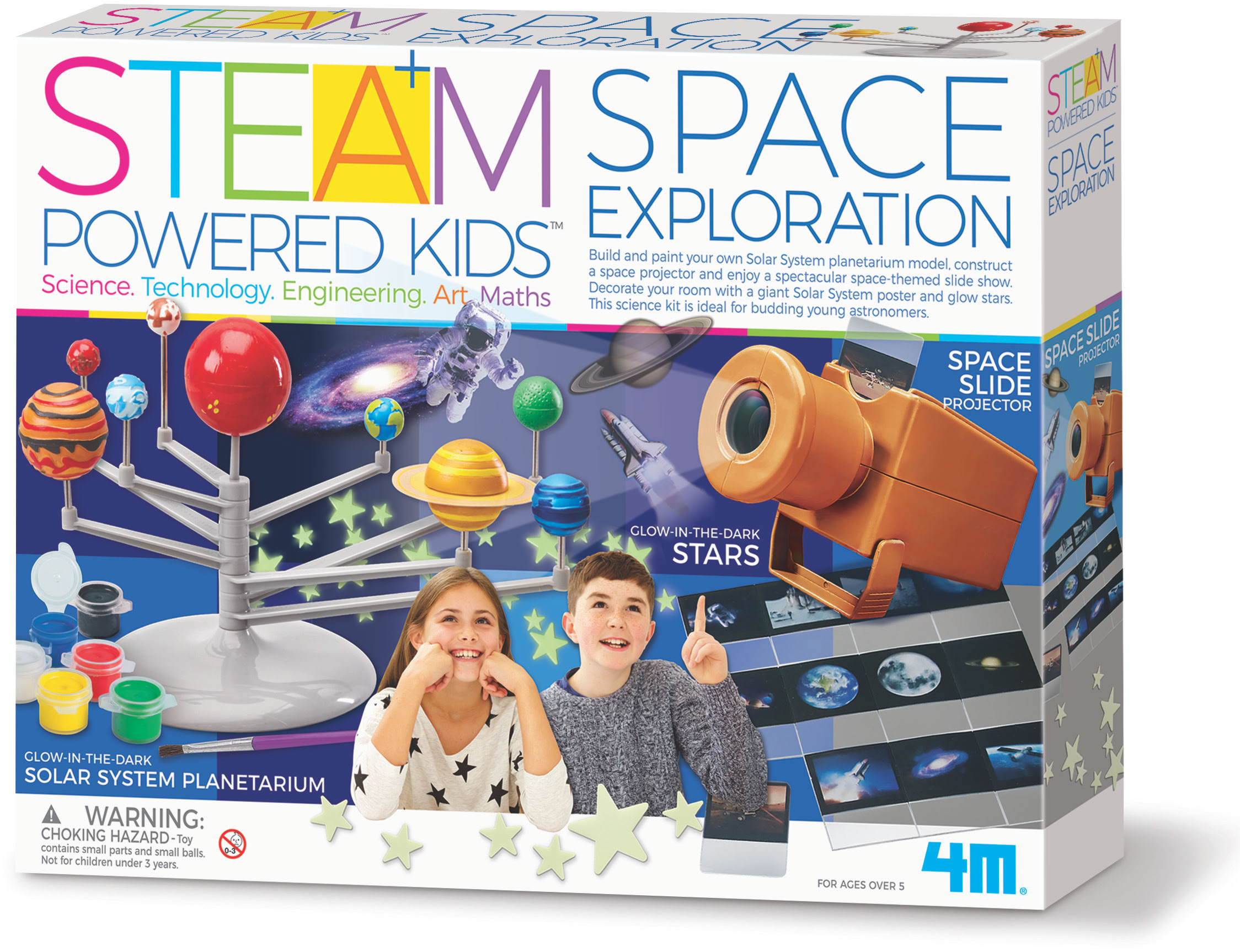 Experimentální sada Space Exploration (Průzkum vesmíru) je součástí řady STEAM Powered Kids od výrobce 4M, která se zaměřuje na principy Science, Technology, Engineering, Art a Maths.