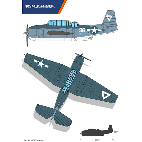Model letadla ke slepení. Velikost: 1:48; délka: 205 mm. Obtížnost: 4. Informace o modelu: Bitva o Filipínské moře. - Střemhlavý bombardér amerického námořnictva z druhé světové války. - Model lze složit se vzduchovou brzdou ve sklopené, přistávací nebo plně otevřené poloze. - Maskovací páska pro průhledné díly je součástí balení.