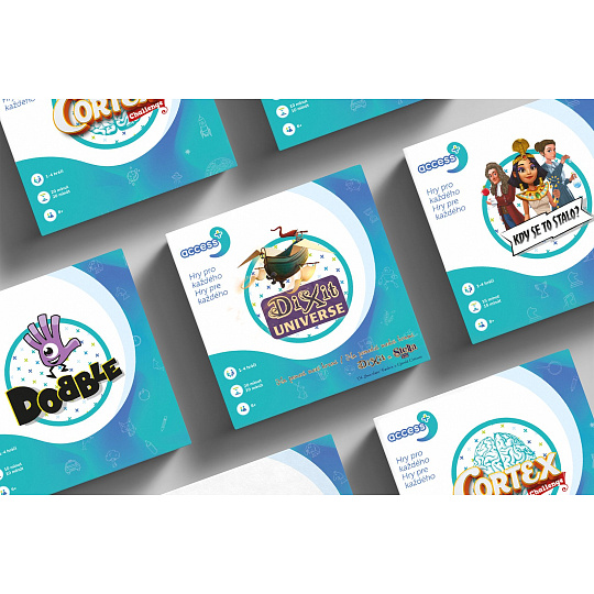 Populární hry Dixit a Stella - Dixit Universe jsou nyní k dispozici ve verzi Access+! Díky upraveným materiálům a pravidlům se může do zábavy zapojit každý. Zvolte si úroveň obtížnosti, preferovaná pravidla a hra může začít! Pomocí hlasovacích karet přiřaďte k uvedenému slovu tři obrázkové karty, které ho nejlépe ilustrují. Je to zábavný způsob, jak si procvičit mentální představivost, řeč a mluvení a zároveň se skvěle pobavit.
