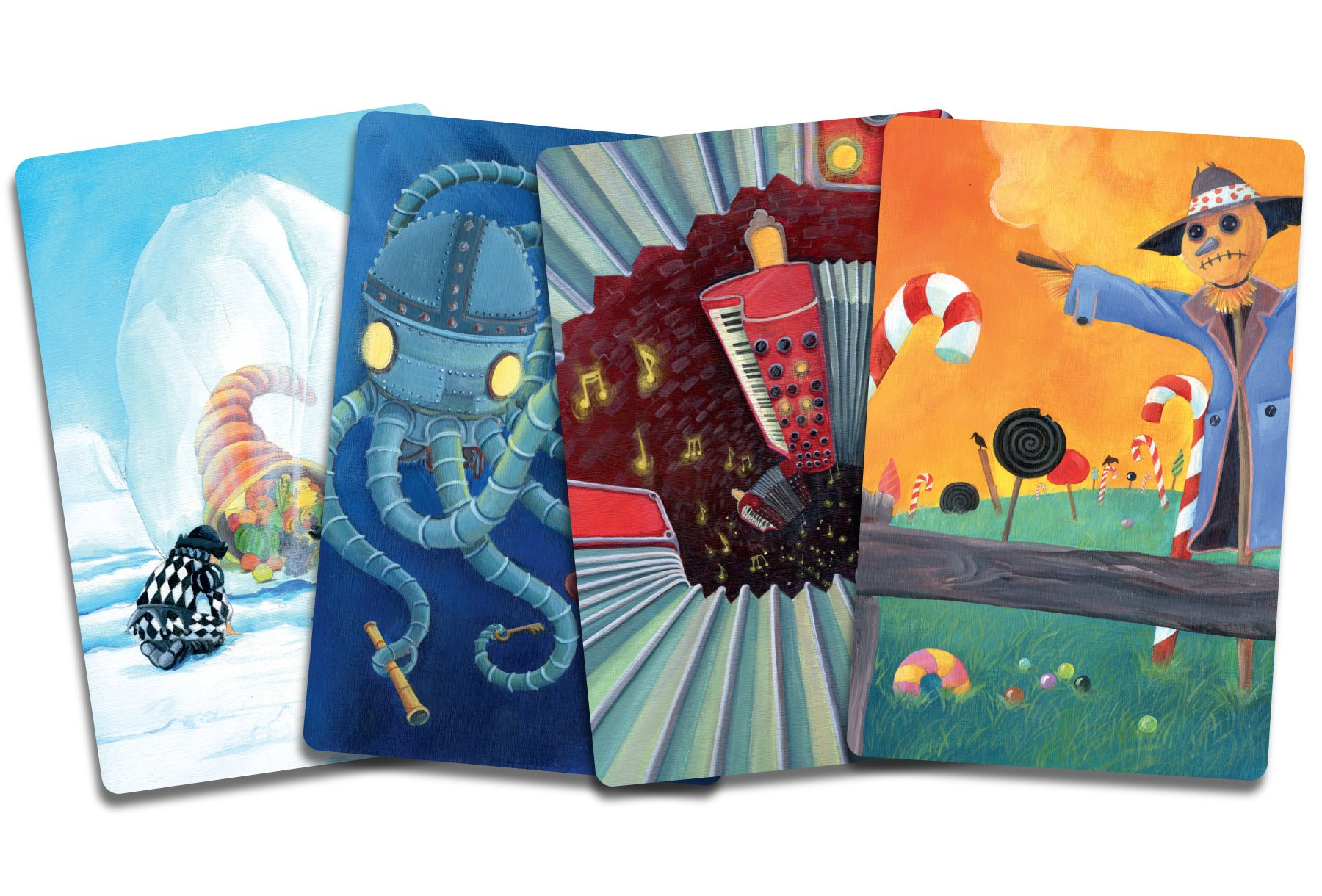 2. Poté ostatní hráči si ze svých karet vyberou tu, která nejlépe odpovídá nápovědě. Vypravěčova karta se zamíchá společně s kartami ostatních hráčů a pak se všechny vybrané karty vyloží lícem na stůl.