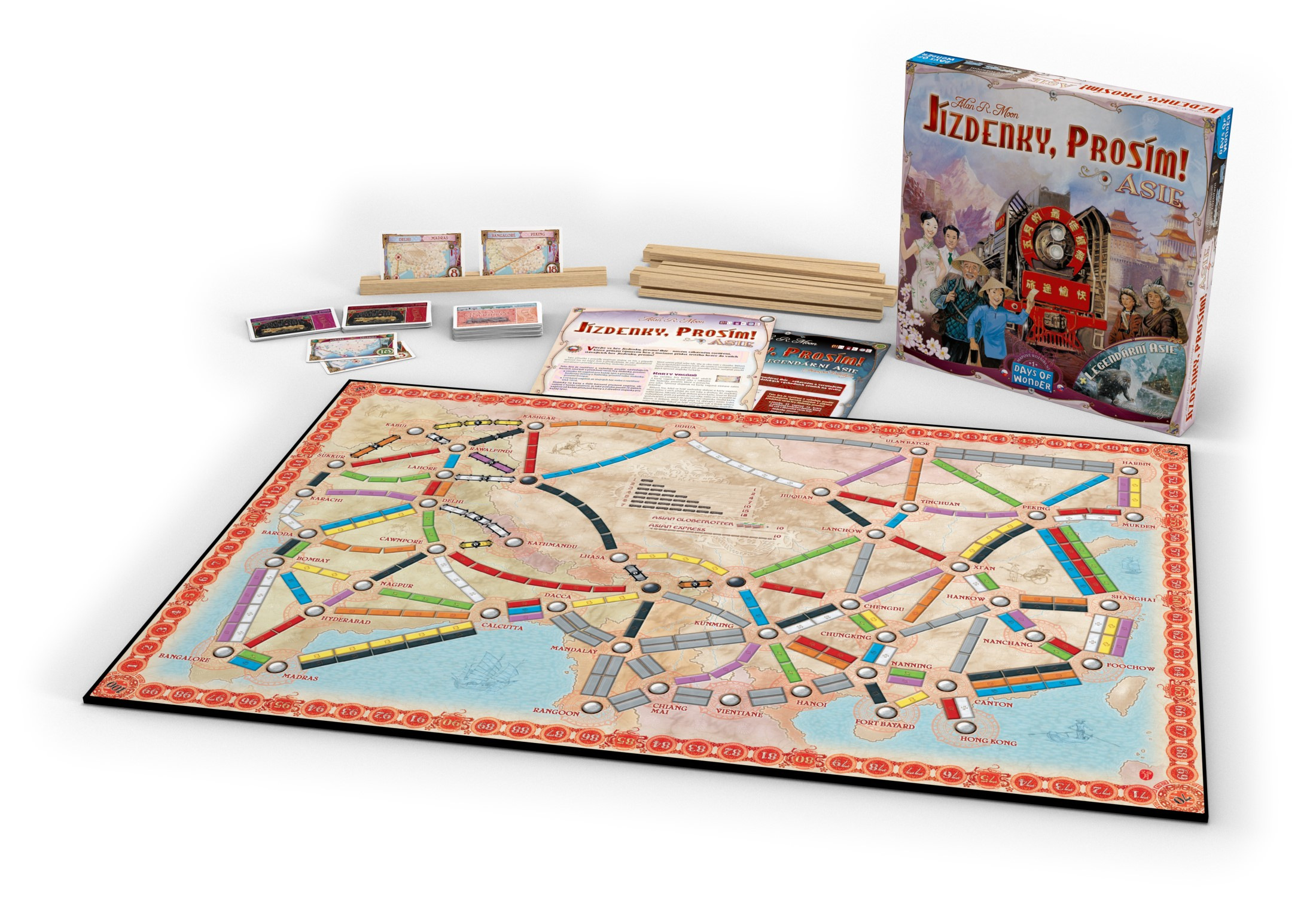 Vydejte se na neuvěřitelné týmové dobrodružství s mapou Asie od Alana R. Moona, kde se společně ve dvojici postavíte soupeřům na 25 000 km dlouhé cestě z Kábulu do Pekingu, přes stepi Mongolska a poušť Gobi až ke Žluté řece! Mapa Asie je navržena speciálně pro týmovou hru se 4 nebo 6 hráči.