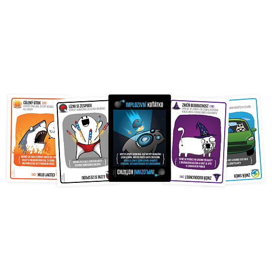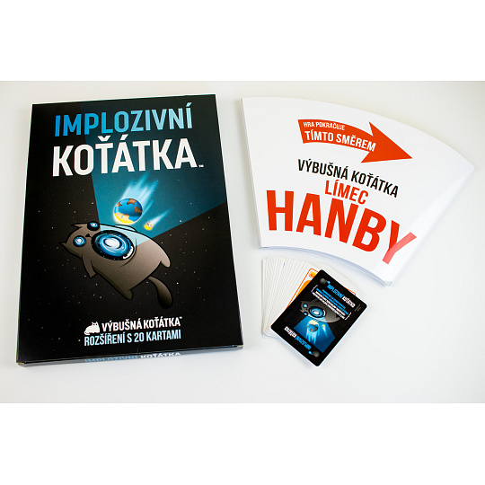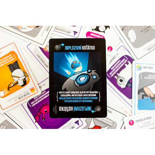 Toto rozšíření nabízí úplně nové druhy karet, které skvěle obohatí vaši originální hru Výbušná koťátka. Naleznete zde například karty s efektem změny směru hry nebo možností pozměnit budoucnost. Čeká na vás také karta Implozivního koťátka - nová šance, jak hanebně umřít a límec hanby, který označí chudáka, který pořádně nesleduje hru. Nejen to vám nabídne první oficiální rozšíření Implozivní koťátka. 20 nových karet v extra velké krabici prostě musíte mít! Díky tomuto rozšíření si hru můžete zahrát až v 6 hráčích!