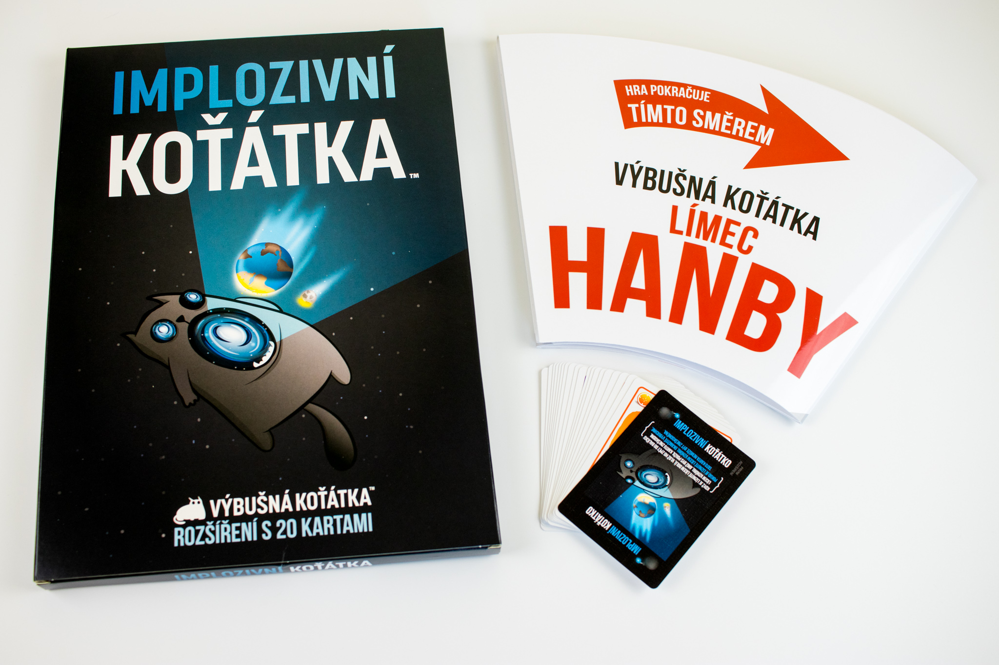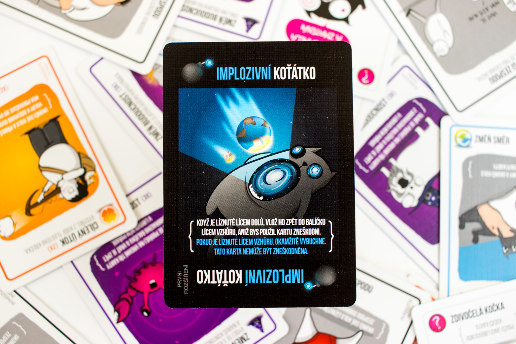 Toto rozšíření nabízí úplně nové druhy karet, které skvěle obohatí vaši originální hru Výbušná koťátka. Naleznete zde například karty s efektem změny směru hry nebo možností pozměnit budoucnost. Čeká na vás také karta Implozivního koťátka - nová šance, jak hanebně umřít a límec hanby, který označí chudáka, který pořádně nesleduje hru. Nejen to vám nabídne první oficiální rozšíření Implozivní koťátka. 20 nových karet v extra velké krabici prostě musíte mít! Díky tomuto rozšíření si hru můžete zahrát až v 6 hráčích!