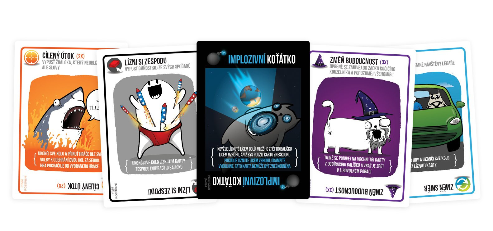 Upozornění! K tomuto rozšíření budete potřebovat alespoň jednu základní sadu Výbušných koťátek (Originální edici, Přisprostlou edici, Párty karty atd.).