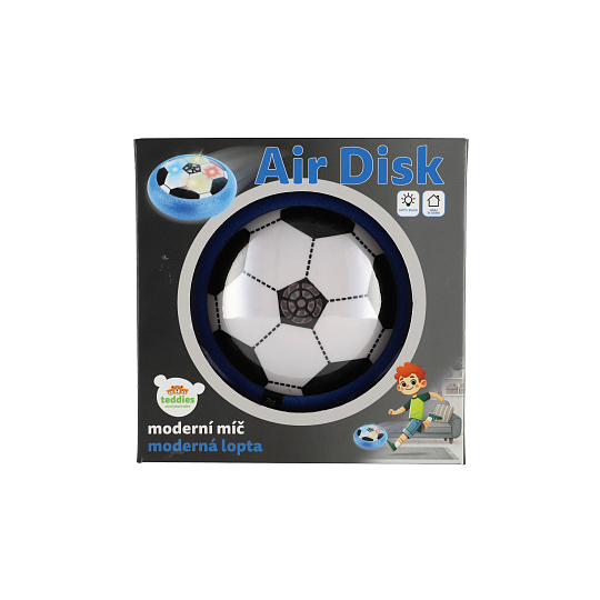 Teddies Air Disk fotbalový míč vznášející se plast 14cm na baterie se světlem v krabičce 20x20cm