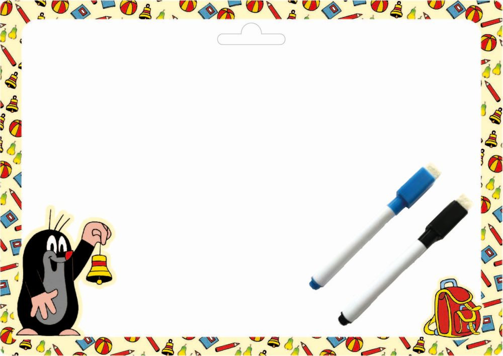 materiál pevný silný karton, lesklý povrch z rubové i lícové strany, součástí výrobku 2 stíratelné popisovače modré a černé barvy, slouží k opakovanému nácviku psaní i kreslení, tabulka vytvořena na základě doporučení poradny pedagogů