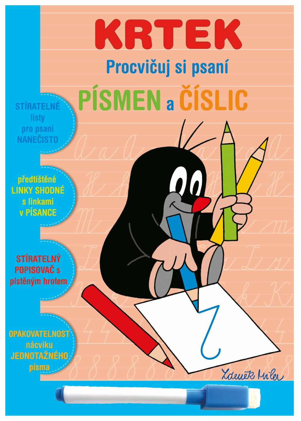Akim Giochi Preziosi Stíratelný sešit "Procvičuj si písmena a číslice" + stíratelný popisovač - Krtek 1
