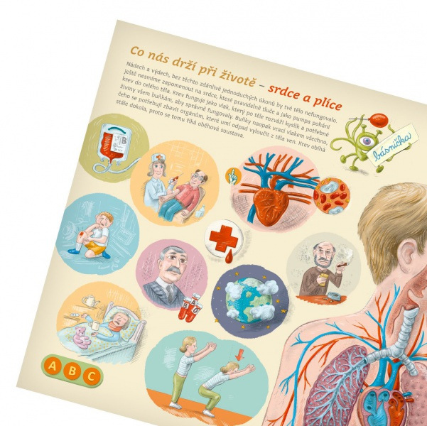 V knize Lidské tělo najdete také básničky, zábavné kvízy a speciální ikony, které děti vybízí, aby si získanou informaci zkusili doslava na vlastní kůži.