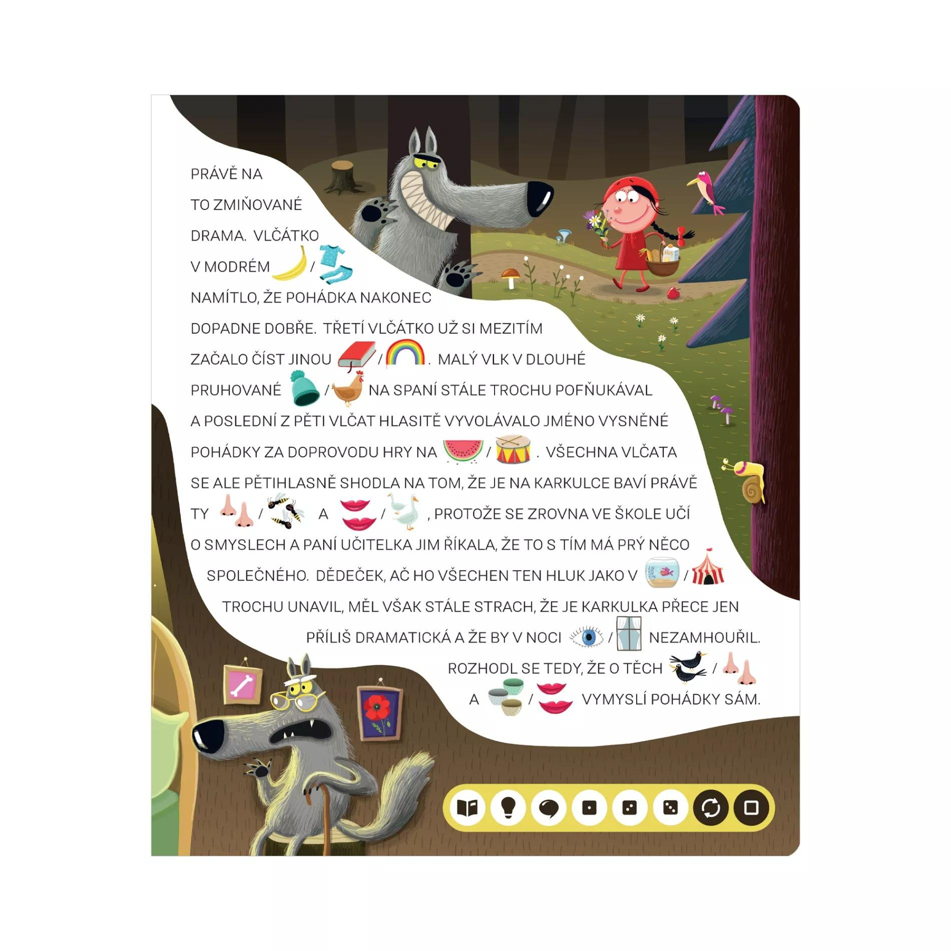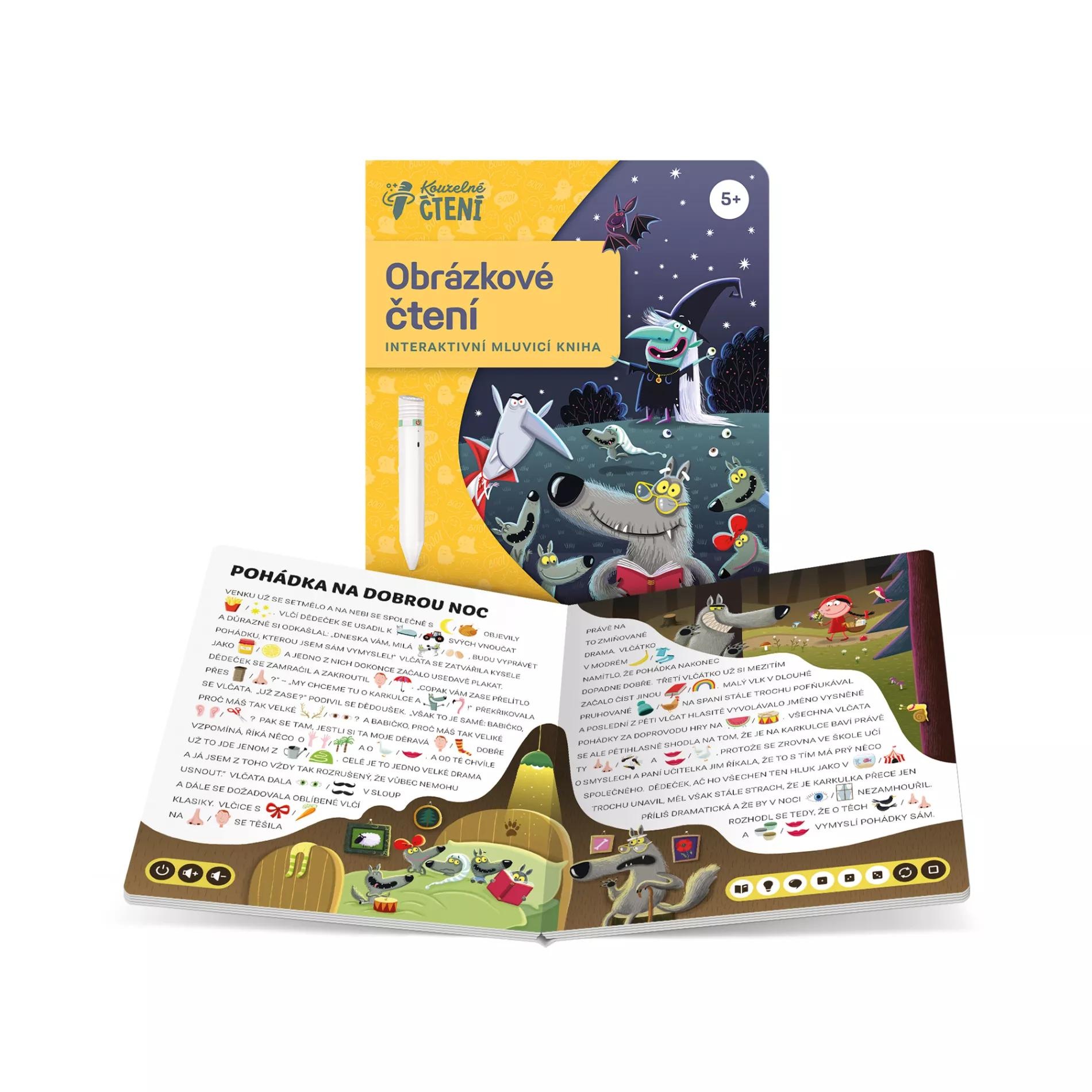 V knize Obrázkové čtení: Pohádky vlčího dědečka najdete 8 příběhů o strašidlech. Součástí textů jsou obrázky, které dětem od 5 let umožňují vydat se při čtení klasickou nebo legrační cestou.