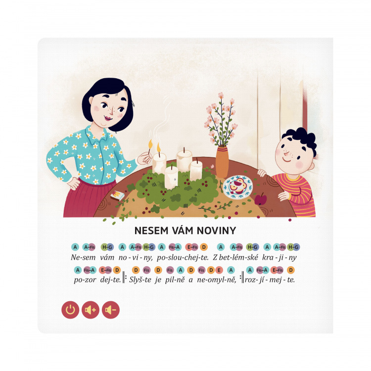 A jak jste zvyklí, můžete si je přehrát se slovy nebo si zazpívat jen s hudebním doprovodem. Každá píseň obsahuje i noty, pomocí níž je možné si písničku přehrát.