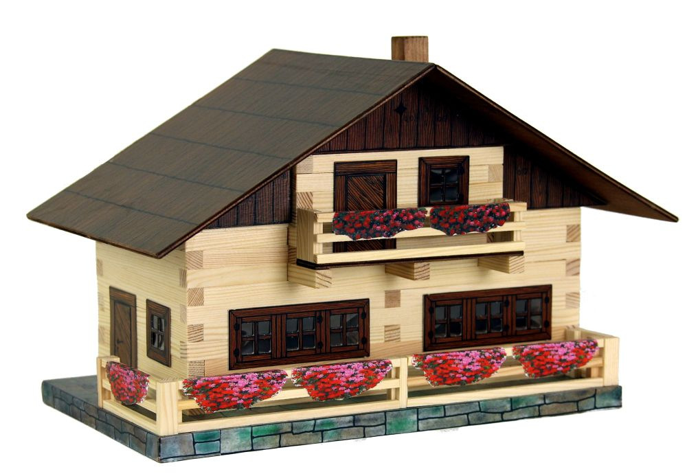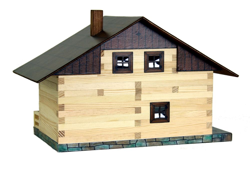 Dřevěná slepovací stavebnice obsahuje dřevěné hranolky daných délek ke stavbě roubených stěn, díly na střechy a štíty, kartonové výseky oken a dveří i předtištěné papírové potisky. Součástí stavebnice je schematický montážní plán.\nVe stavebnicích HOBBY KITS naleznete vše potřebné k sestavení. Ke stavbě slouží jednoduché obrázkové návody se symboly jednotlivých úkonů, a proto je můžou sestavovat děti po celém světě. Základním stavebním materiálem jsou přesně zhotovené hranoly z borového dřeva a rozměru 9×9 mm v délkách od 16 do 230 mm určených ke stavbě roubených stěn. Plochy střech, štítů, pavlačí a teras jsou zhotoveny z překližky 3 mm a polepují se papírovými potisky. Funkční dveře a okna zasklená folií jsou z potisklého kartonu. Jednotlivé stavby se slepují lepidlem na dřevo a papír (není obsahem). Součástí návodu jsou malé kapitoly ze stavebního oboru a historie lidové architektury. Modely staveb jsou v měřítku 1:32. Hotové stavby jsou estetickými doplňky dětských pokojíčků, využívají se ke hrám s autíčky, zvířátky, vojáčky i panenkami, o vánocích mohou tvořit základ lidového Betlému.