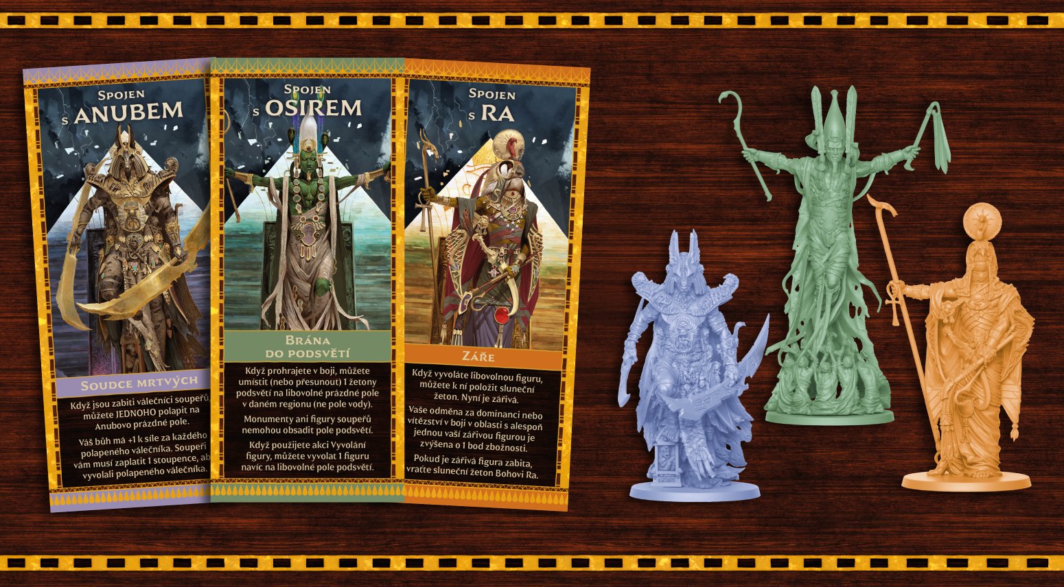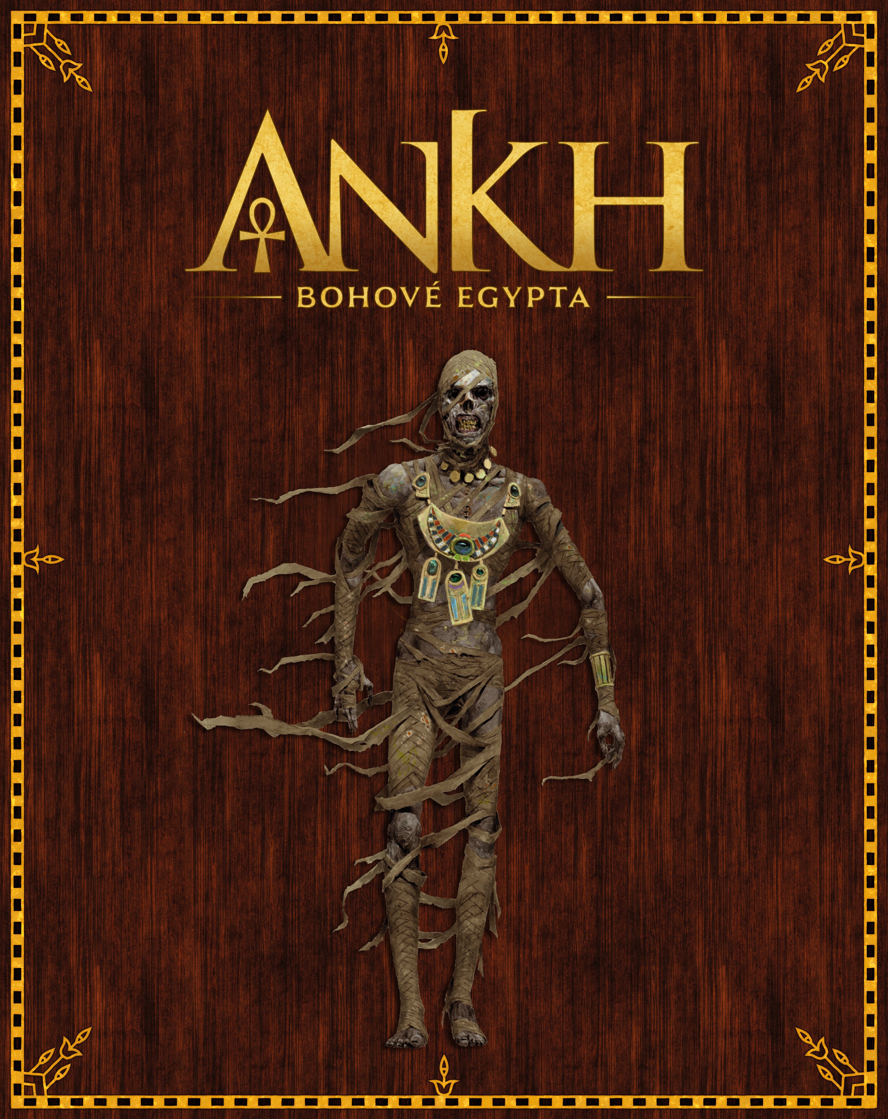 žetonů Ankh o 1 plastový drahokam o 1 hrací plán o 2 hlavní desky o 10 desek bohů o 46 karet o 197 žetonů