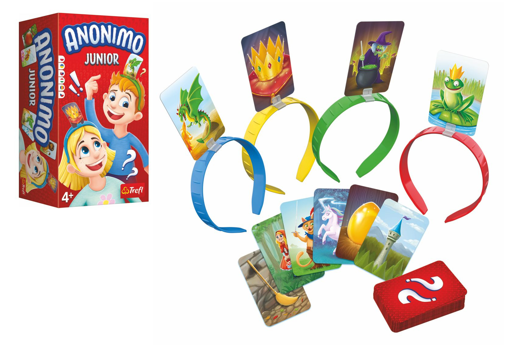 Vstupte do světa bájí a legend! Anonimo junior je společenská hra, při které musí hráči uhádnout, kdo nebo co je na kartách, které mají na hlavě. Nasaďte si čelenku, vytáhněte si kartu s postavou nebo věcí a klaďte chytré otázky tak, abyste co nejrychleji uhádli, kdo nebo co jste. Hra obsahuje: 112 obrázkových karet, 4 čelenky s držáky, návod. Rozměr krabice: 14,5 x 26 x 10 cm Vhodné pro děti od 4 let