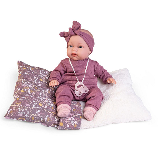 Mluvící, ručně vyrobená realistická španělská panenka - miminko. Po zatlačení na bříško začne panenka vydávat zvuky podobné dětskému žvatlání. Panenka má měkké látkové tělo, hlava a končetiny jsou vyrobené z kvalitního měkčeného vinylu. Oblečení některých panenek bylo vyrobeno z organické bavlny, která zaručuje výrobu z ručně sbírané, ekologicky bez chemického ošetření pěstované bavlny. Firma Antonio Juan klade velký důraz na ekologii a proto jako první využívá v tomto odvětví zmíněnou bavlnu. Velikost 34 cm. Baleno v dárkové krabici. Doporučený věk od 3 let. Součástí balení je 3 x knoflíková baterie LR44 s návodem na její výměnu. Baterie jsou spotřební zboží a proto jejich vybití není důvodem k reklamaci panenky.