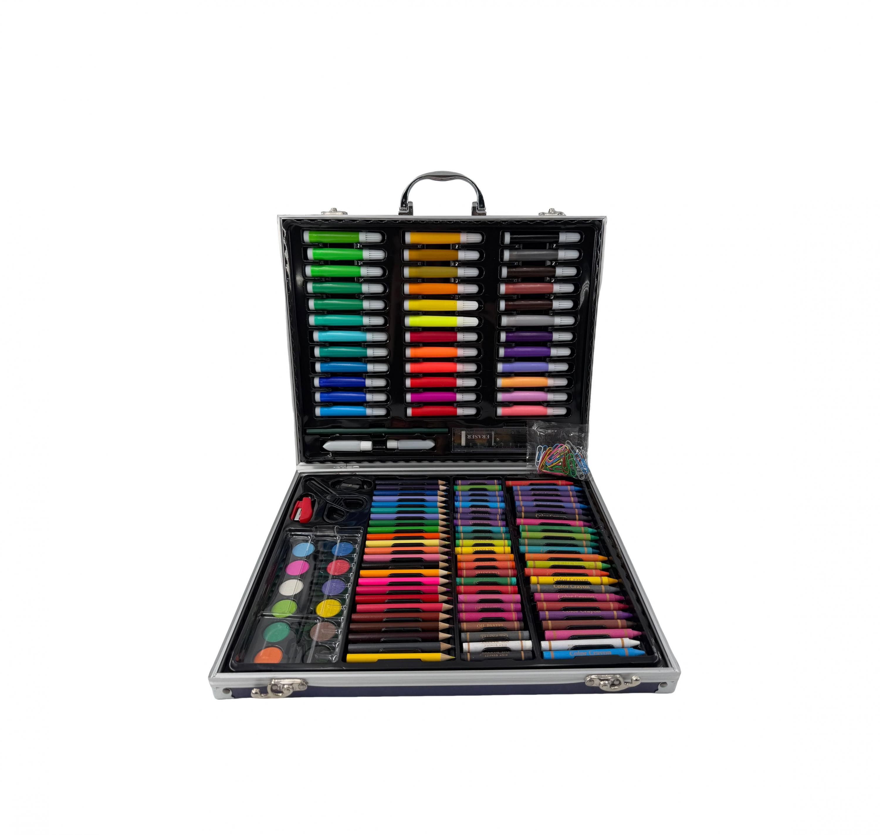 Celý kufřík je navržen tak, aby byl praktický a snadno přenosný. Všechny pomůcky mají své přesně vymezené místo, takže se v kufříku udržuje pořádek a nic se neztratí. Díky pevnému uzávěru se nemusíš bát, že se kufřík samovolně otevře.