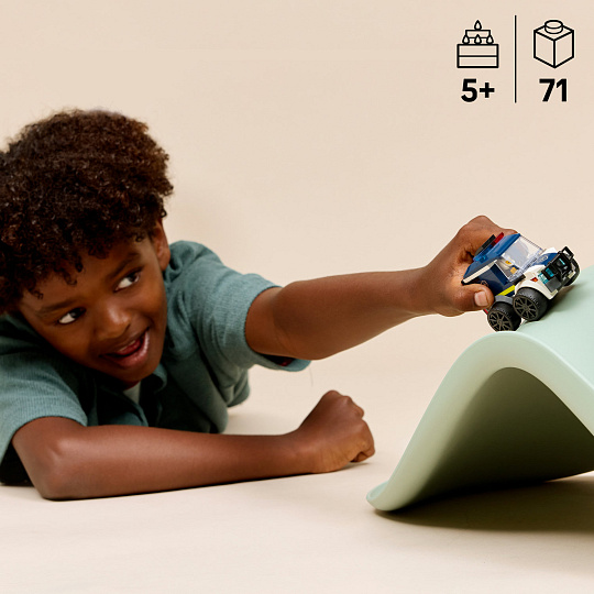 Součástí balení je i minifigurka mladého policisty LEGO City Autíčka, která se perfektně vejde do kabiny řidiče. Děti si tak mohou přehrávat různé policejní scénáře a zažívat napínavé honičky a zatýkání zločinců.