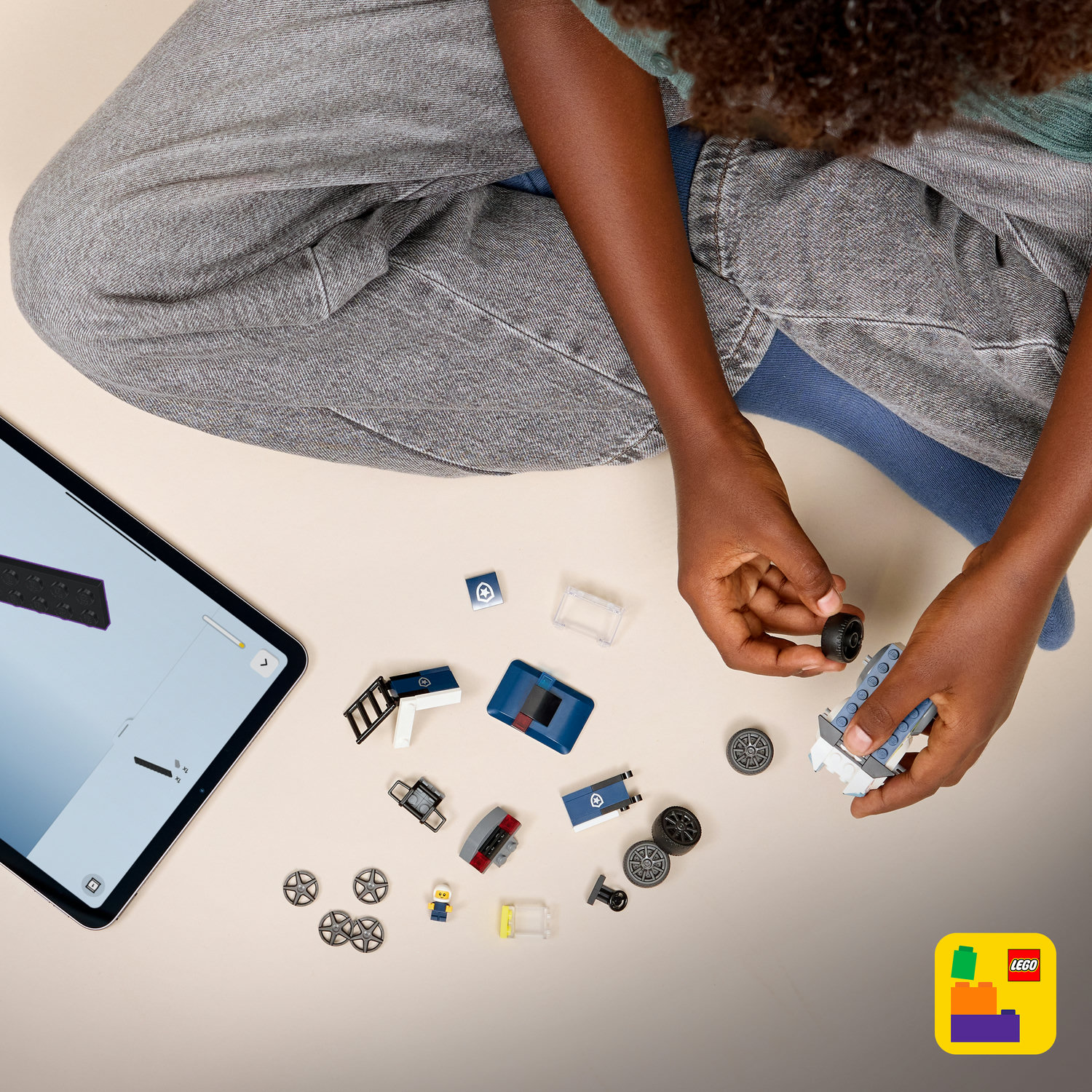 Stavění modelu LEGO City Autíčka – Policejní dodávka je ještě zábavnější s intuitivní aplikací LEGO Builder. Tato aplikace umožňuje dětem přibližovat a otáčet model ve 3D, ukládat a sledovat postup stavění. Díky tomu je stavění ještě snazší a zábavnější.