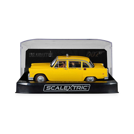 Scalextric zachycuje netradiční kapitolu bondovské historie prostřednictvím zářivě žlutého taxíku Chequer Taxi Cab z filmu „Žít a nechat zemřít“. Ačkoli je 007 známý svými elegantními sportovními vozy a Aston Martiny nabitými technickými vychytávkami, tento pracovitý newyorský taxík sehrál nezapomenutelnou roli v jedné z nejvíce vzrušujících honiček na Manhattanu, čímž dokázal, že i běžná vozidla si mohou v špionážním filmu vybojovat svůj moment slávy.