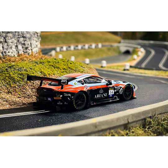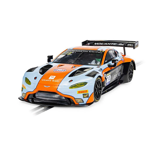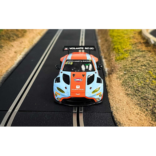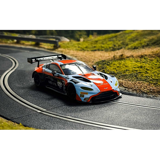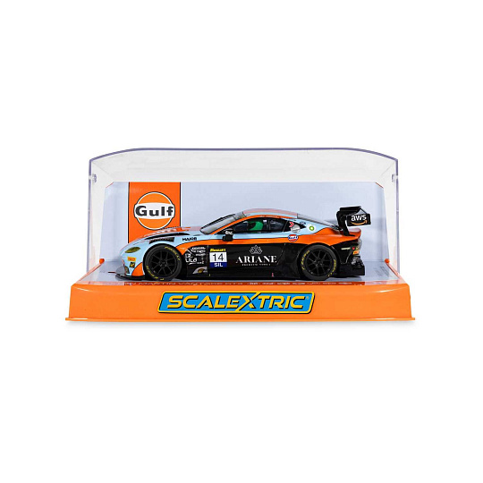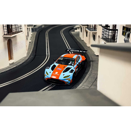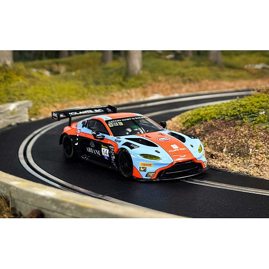 Aston Martin GT3 Vantage vtrhne na vaši dráhu Scalextric v nejuznávanějších barvách motoristického sportu: modré a oranžové barvě týmu Gulf. Tento bleskurychlý vůz GT3, který míří na závod 12 hodin Bathurstu 2025, kombinuje legendární barvy týmu Gulf s agresivním vzhledem modelu Vantage a vytváří tak model, který oslavuje tradici vytrvalostních závodů s moderním nádechem.
