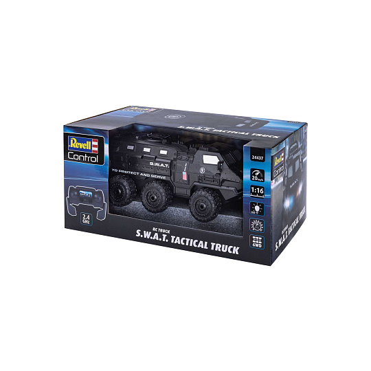 Zažijte vzrušující dobrodružství a čistou zábavu při řízení s RC náklaďákem S.W.A.T. Tactical Truck od Revell Control. Toto vysoce detailní a realisticky navržené vozidlo rozbuší srdce malých i velkých. Náklaďák je ideální pro děti od 8 let, které touží po napínavých RC zážitcích - ať už v interiéru nebo exteriéru.