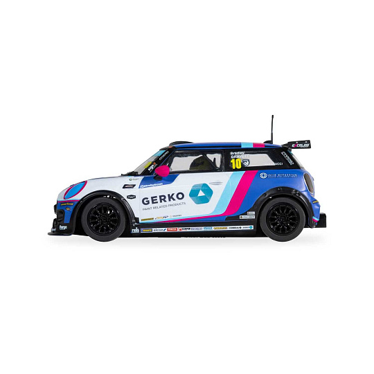 Mini Cooper, který v šampionátu JCW 2024 řídí Bradley Gravett, přináší na vaši dráhu Scalextric vzrušení ze závodů moderních cestovních vozů ve svém nápadném bílo-modrém zbarvení. Tento moderní závodní vůz s číslem 10 navazuje na ikonické dědictví značky Mini a zároveň předvádí špičkový výkon, díky kterému je šampionát JCW takovou podívanou. Bradley Gravett kráčí ve stopách svého otce, legendy britských cestovních vozů Robba Gravetta, a s dovedností a odhodláním si buduje vlastní závodní odkaz.