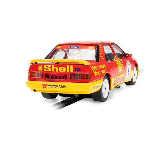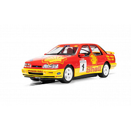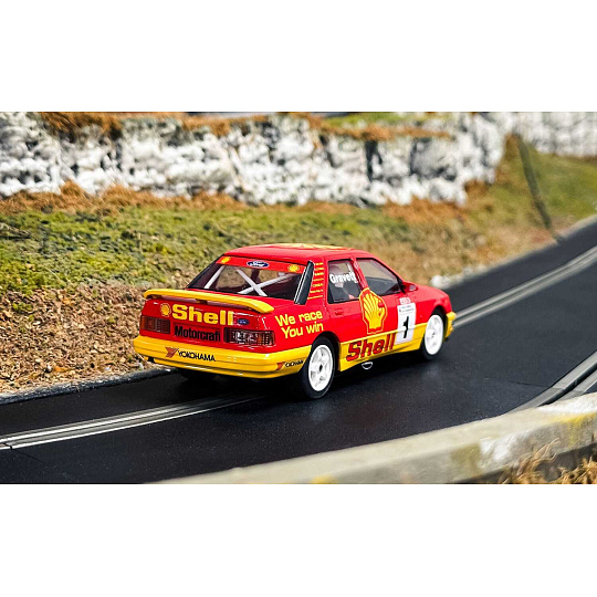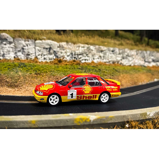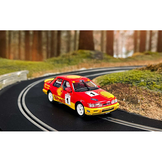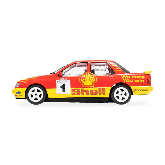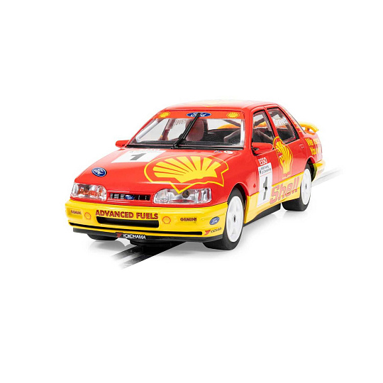 Scalextric zachycuje dramatičnost závodů cestovních vozů z počátku 90. let prostřednictvím modelu Ford Sierra Sapphire, s nímž v roce 1990 v seriálu BTCC závodil Rob Gravett. Tento model v nápadném červeno-žlutém zbarvení představuje éru, kdy britský vrcholný motoristický šampionát charakterizovala surová síla a dominance vozů s pohonem zadních kol.