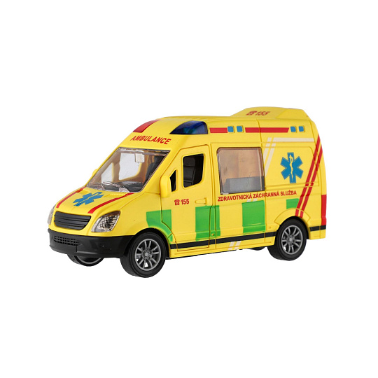 Záchranná mise může začít. Plastová sanitka o velikosti 12 cm potěší všechny malé záchranáře. Díky setrvačníku stačí auto natáhnout dozadu a samo se rozjede vpřed. Realistické provedení s nápisem „Ambulance“ a motivem zdravotnické záchranné služby dělá z tohoto modelu skvělý doplněk do dětské sbírky autíček.