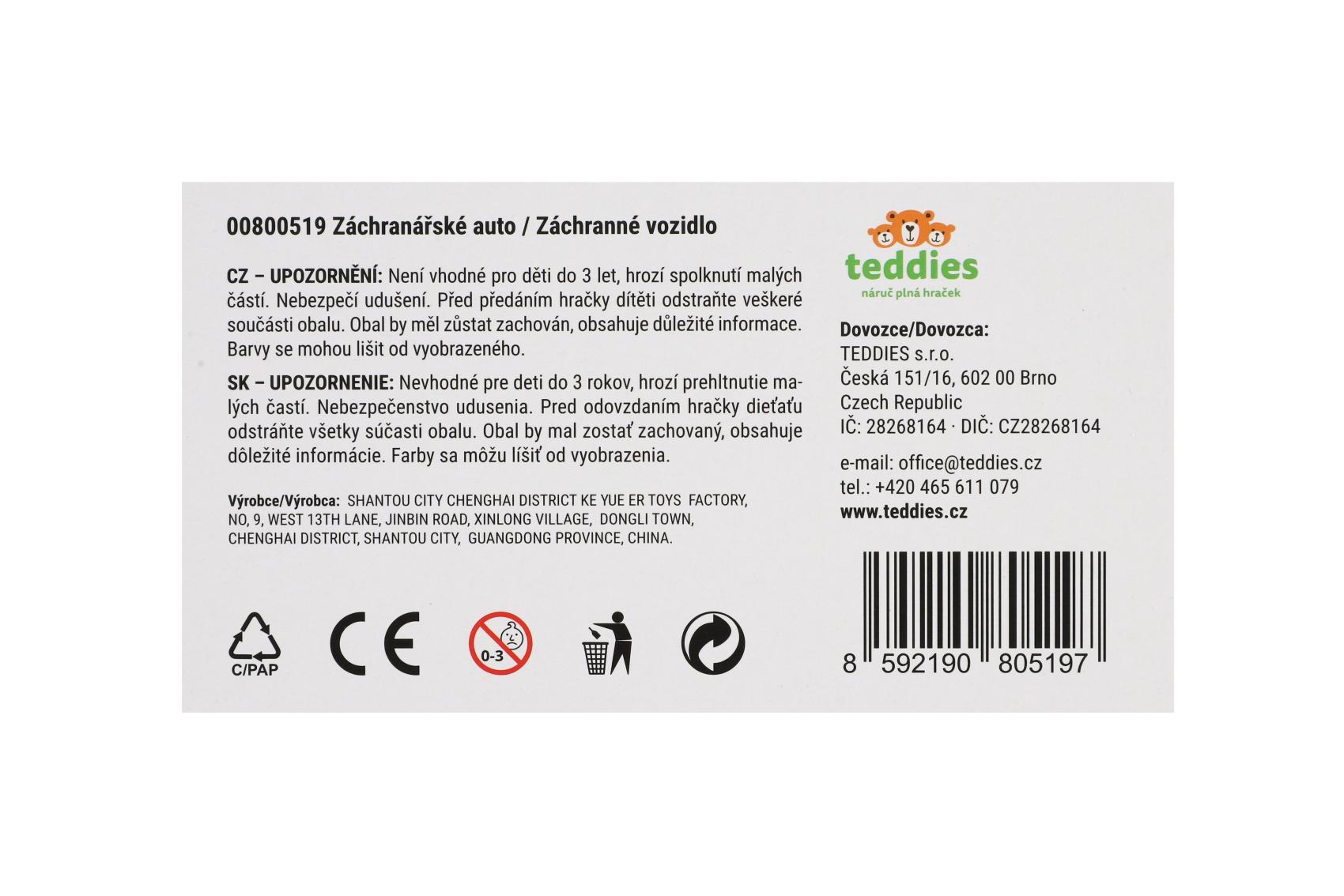 Teddies Auto ambulance plast 12cm na setrvačník