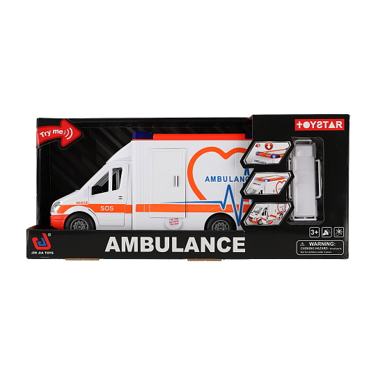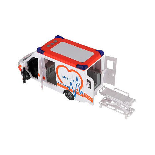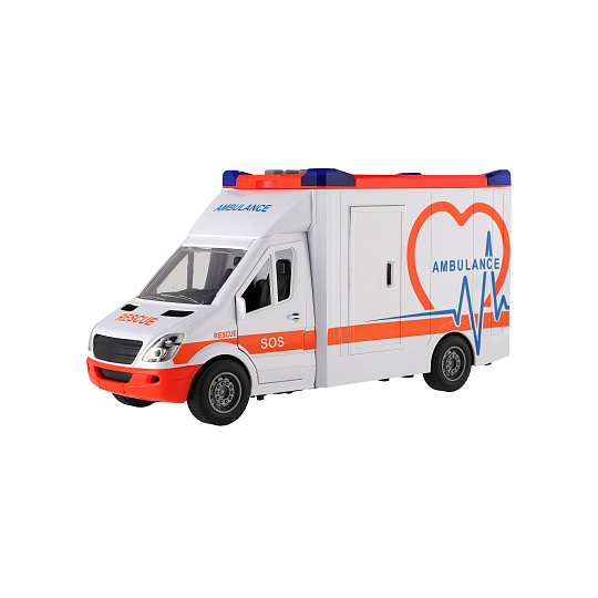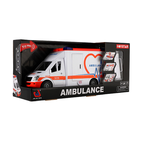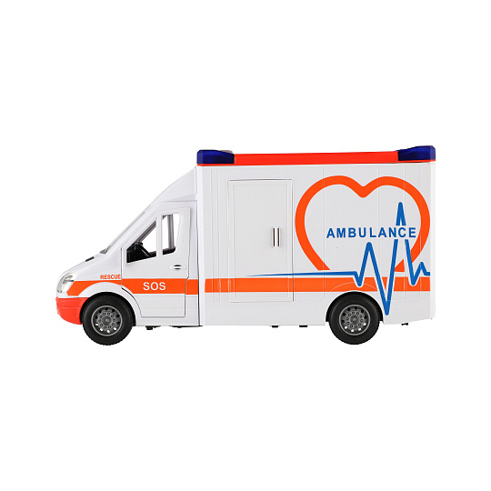 Ambulance je vozidlo, které se využívá při přepravě zraněných pacientů, k dopravě raněných nebo nemocných. Navíc ambulance disponuje lehátkem pro převoz pacientů. Baterie 2x AA jsou součástí výrobku. Ambulance má otevírací dveře a je na setrvačník. Vyrobeno z kvalitního a odolného plastu. Velikost auta je 28 cm. Rozměry balení 39 x 18 x 12 cm Vhodné pro děti od 3 let.