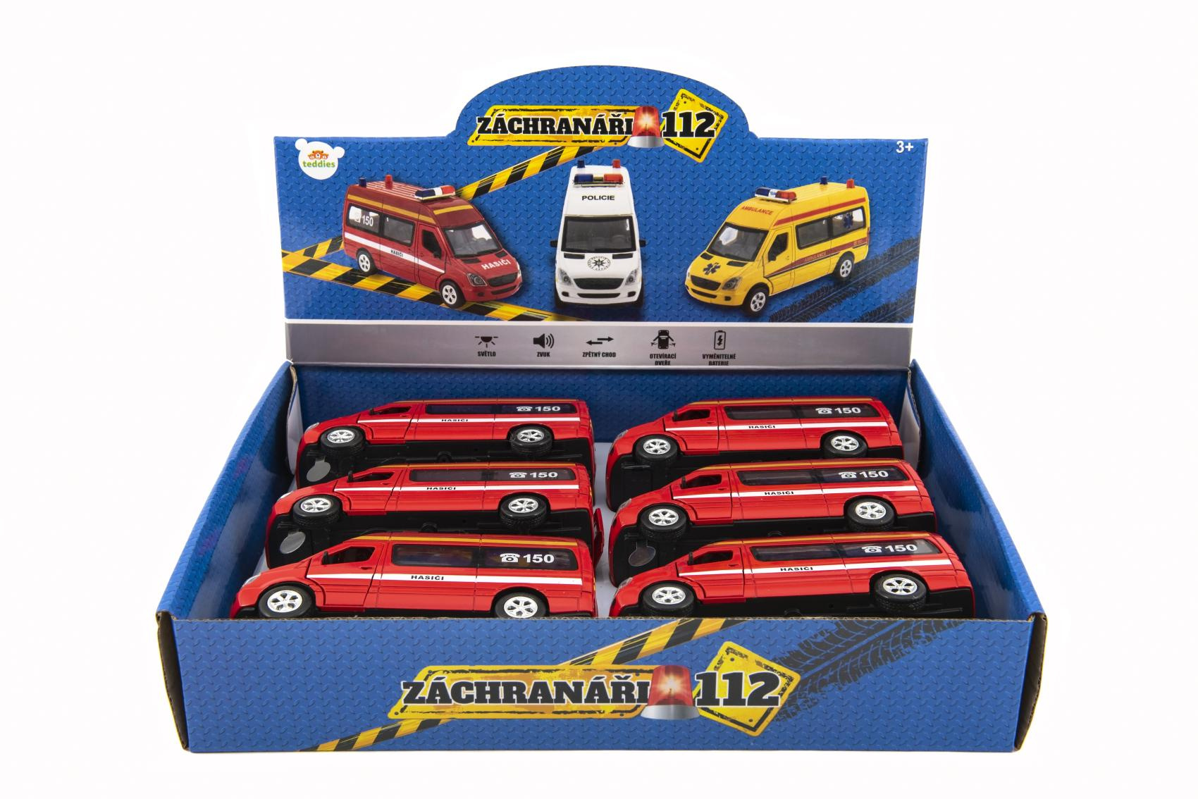 Rappa Auto hasiči kovové 15cm na baterie se světlem se zvukem na zpětné natažení 6ks v boxu