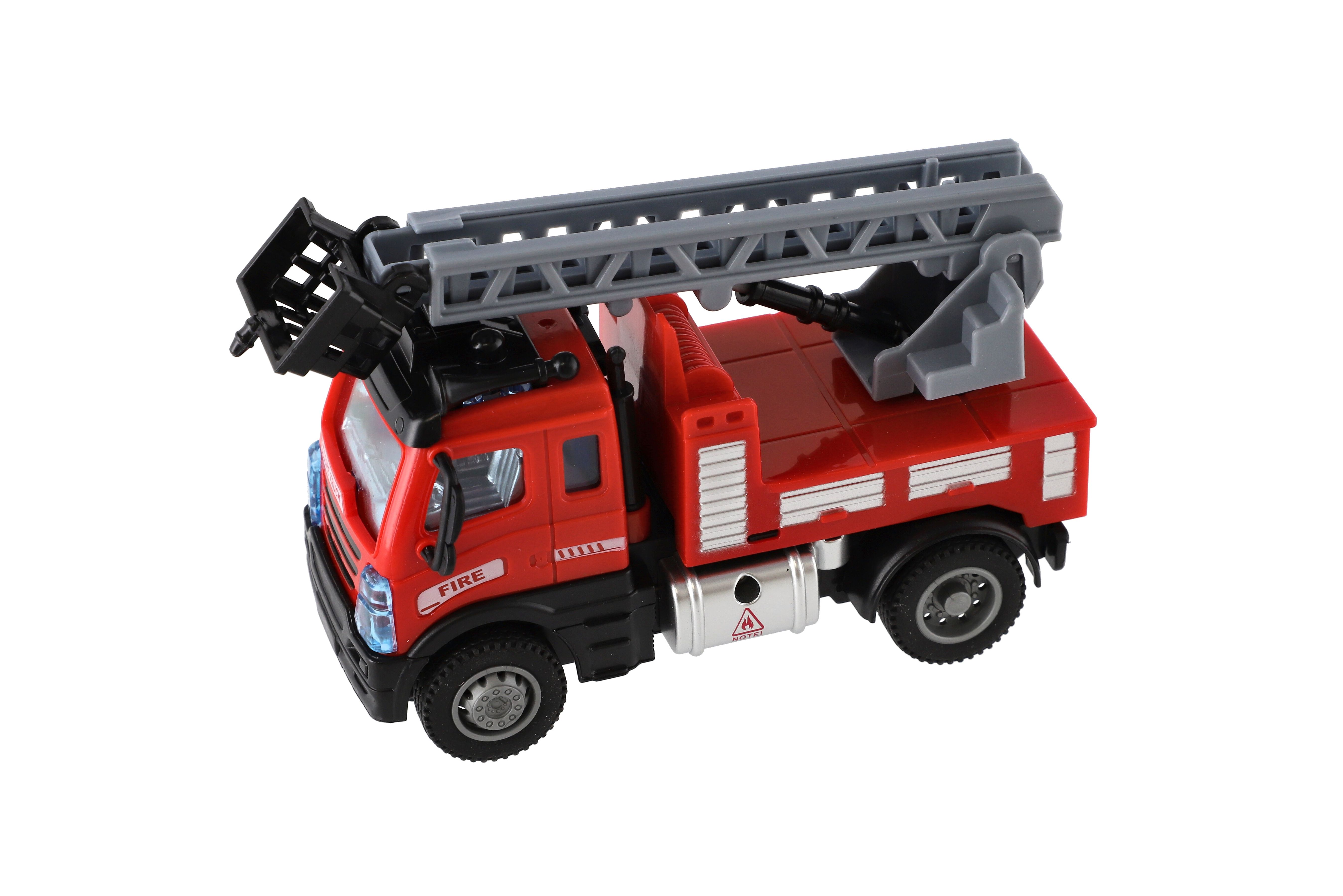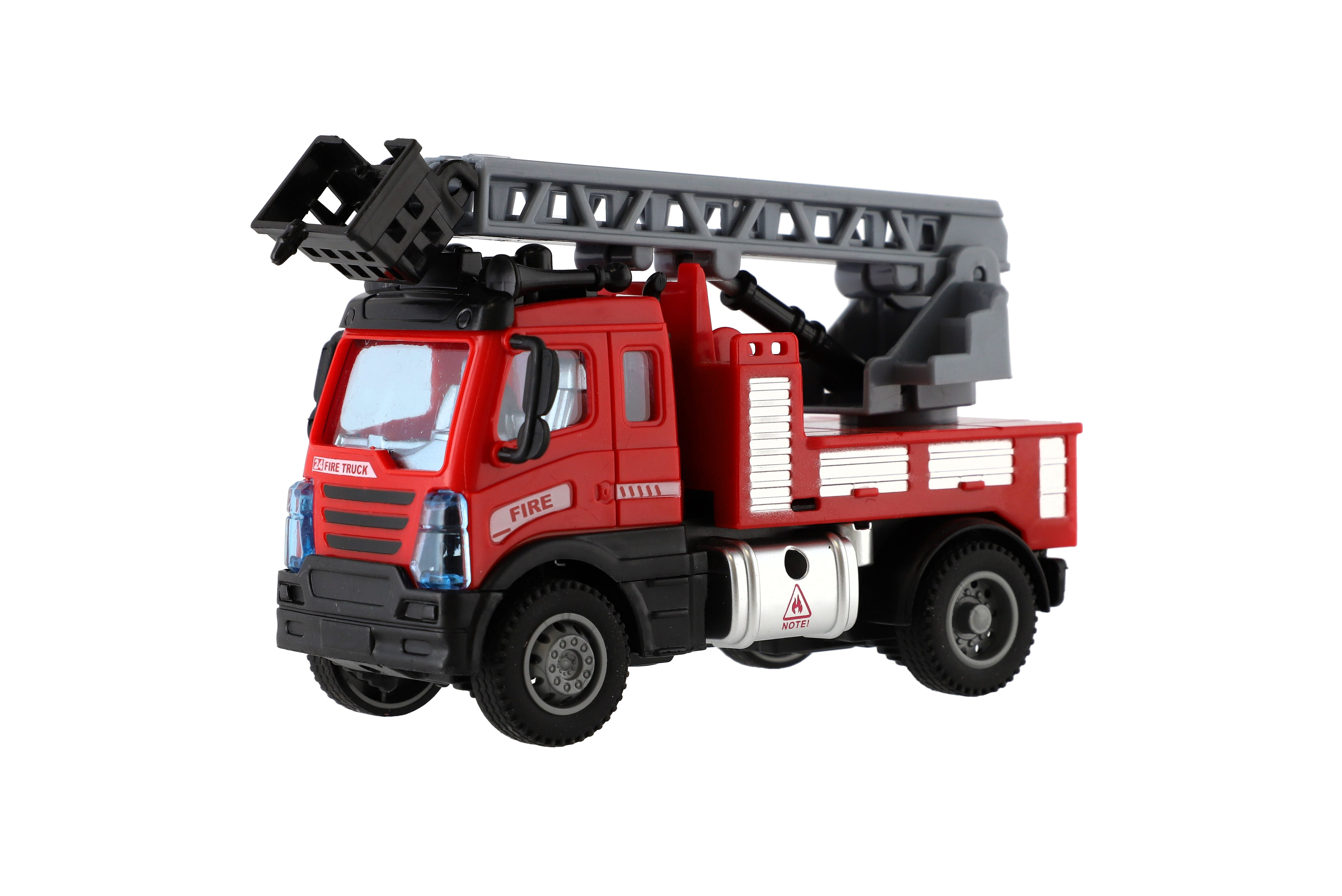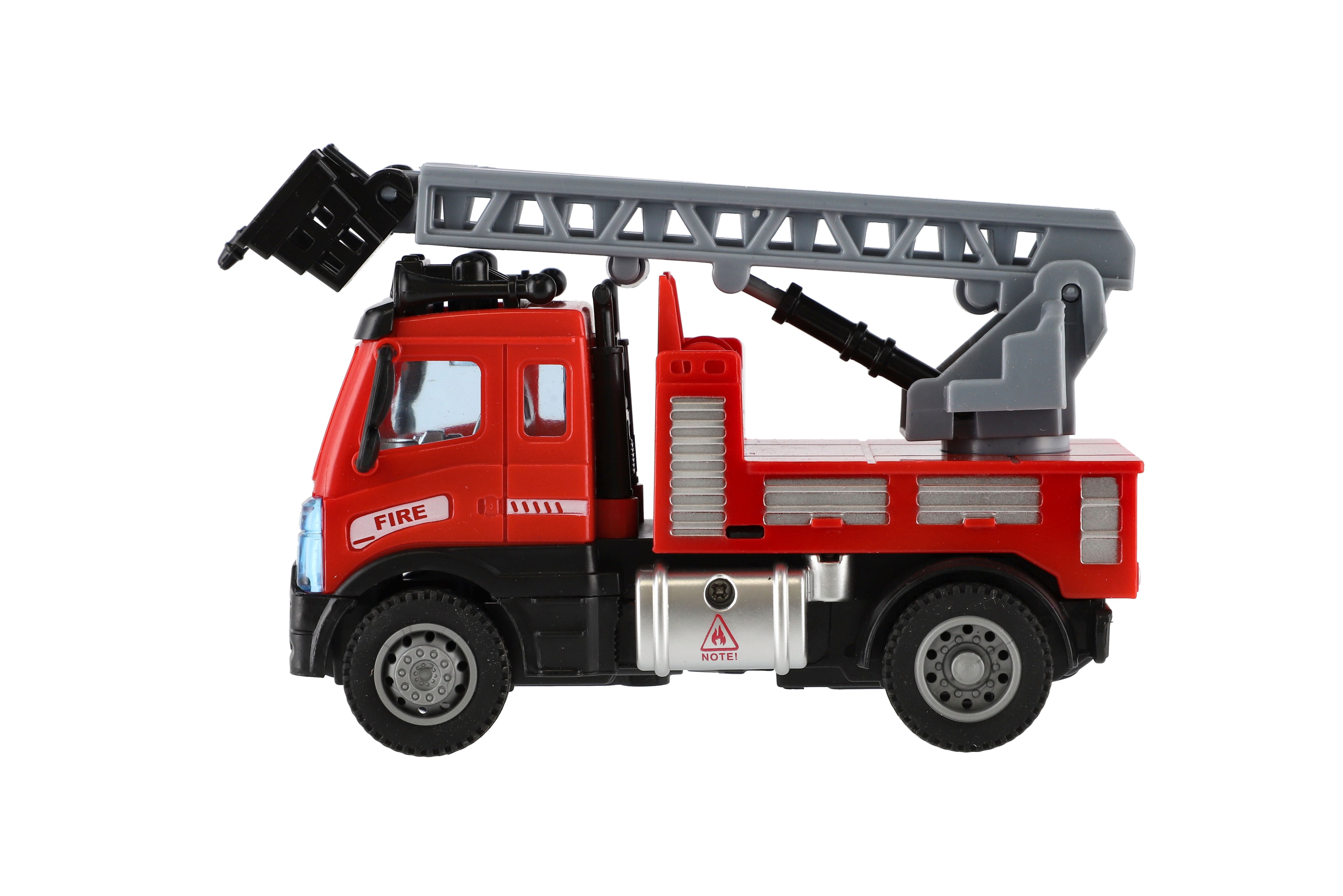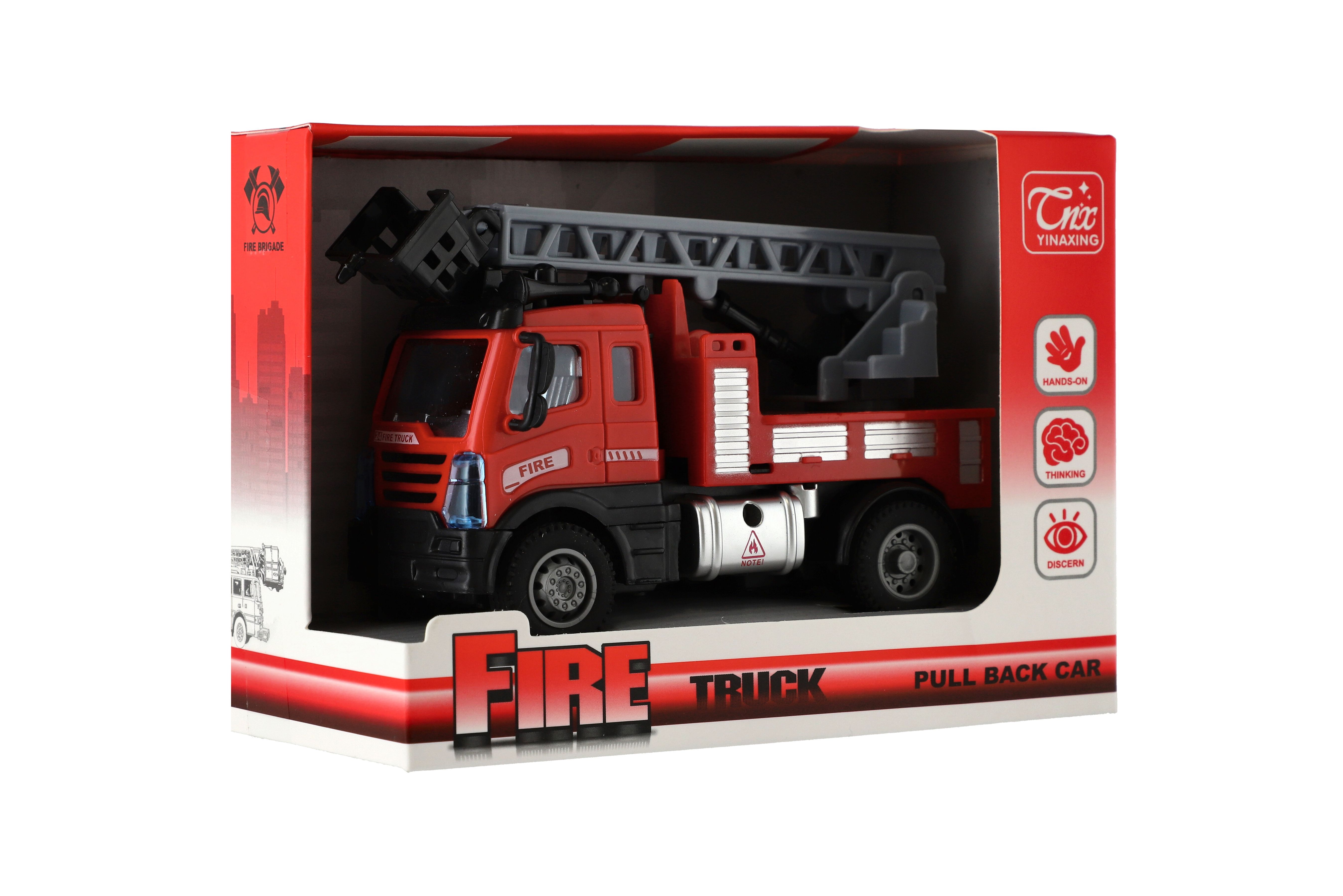 Krásný model hasičského auta. Auta jsou vyrobena z kvalitního plastu a má vysouvací žebřík. Auto je na zpětné natažení. Velikost auta: 13 cm Rozměr balení: 17 x 12 x 8 cm Vhodné pro děti od 3 let