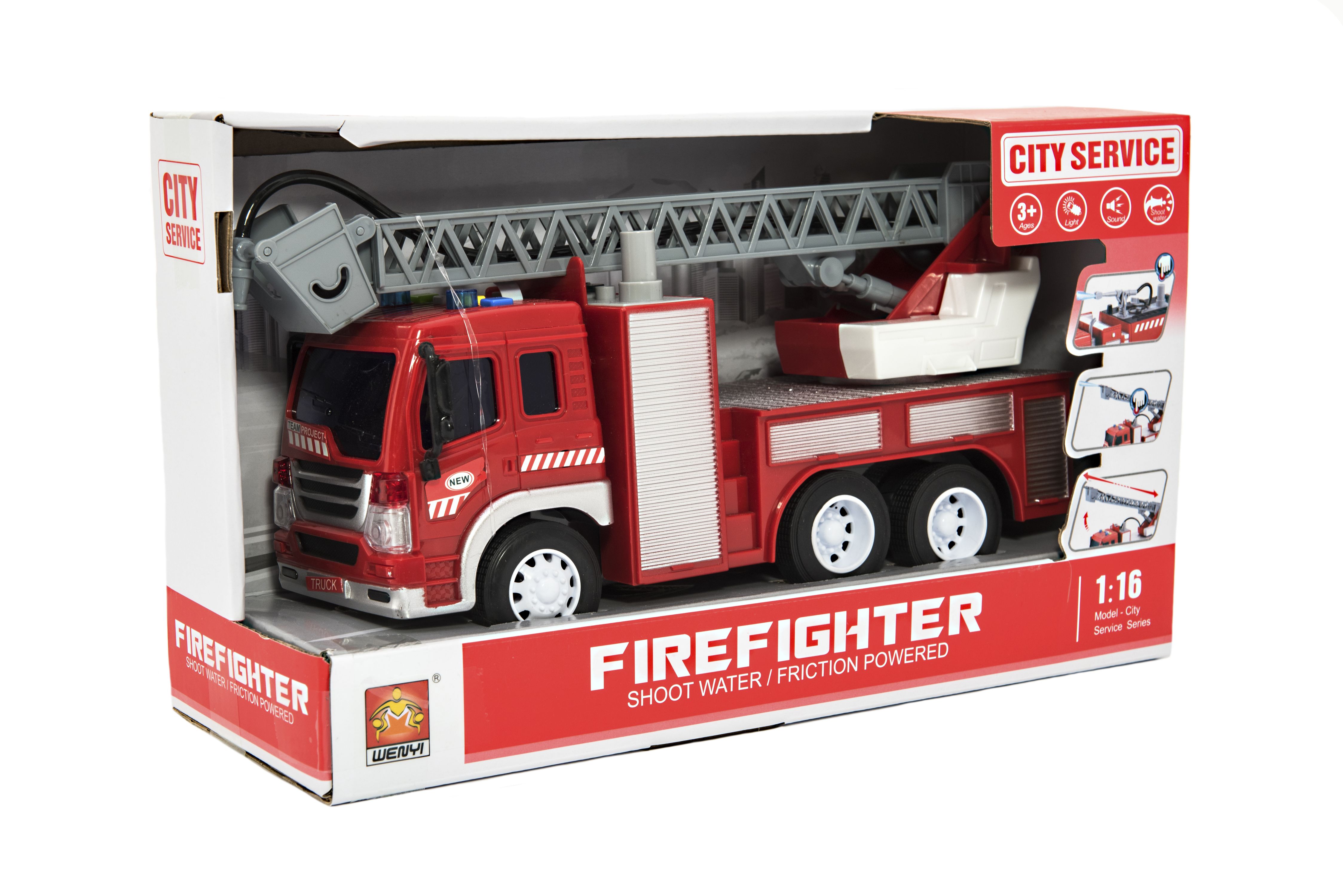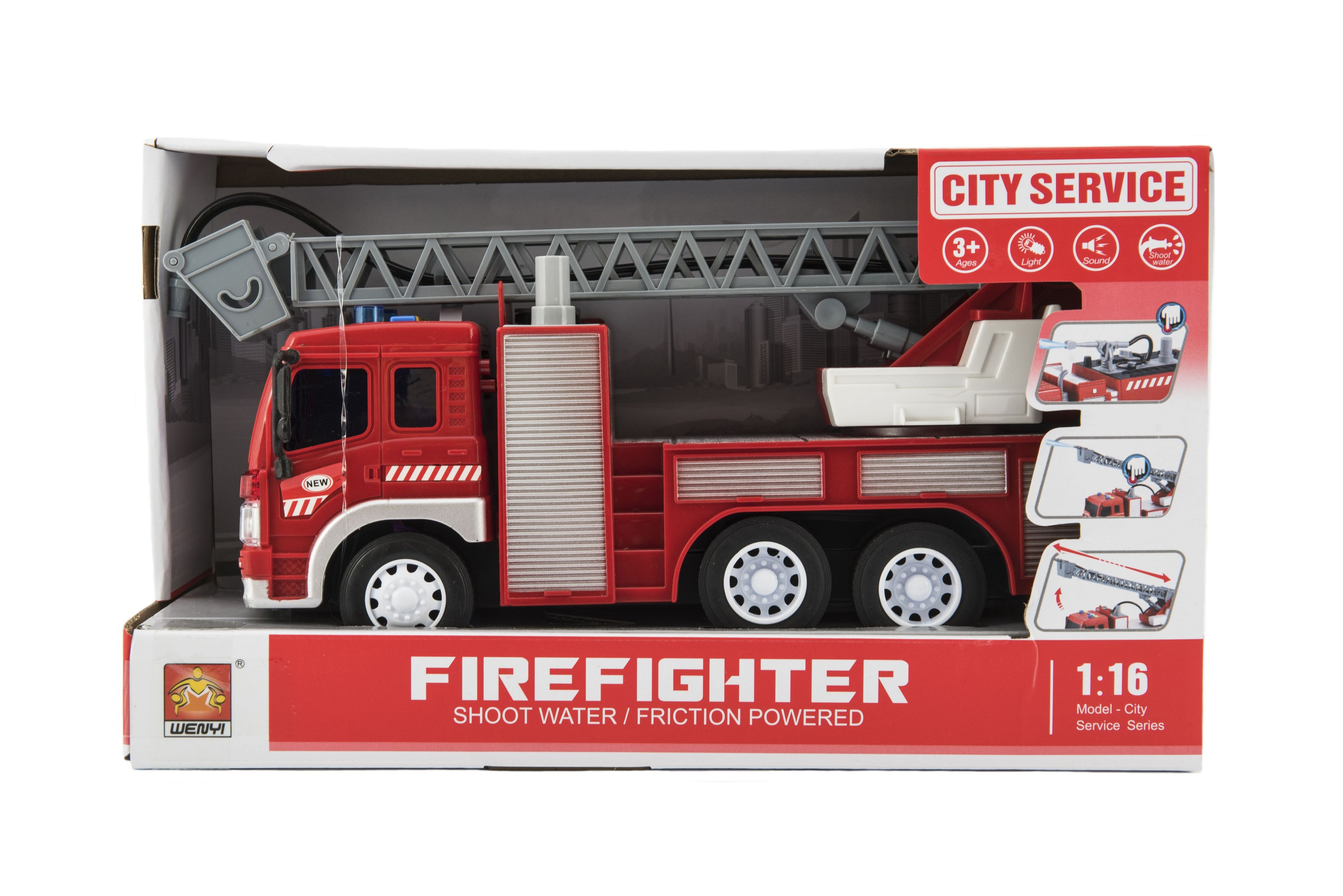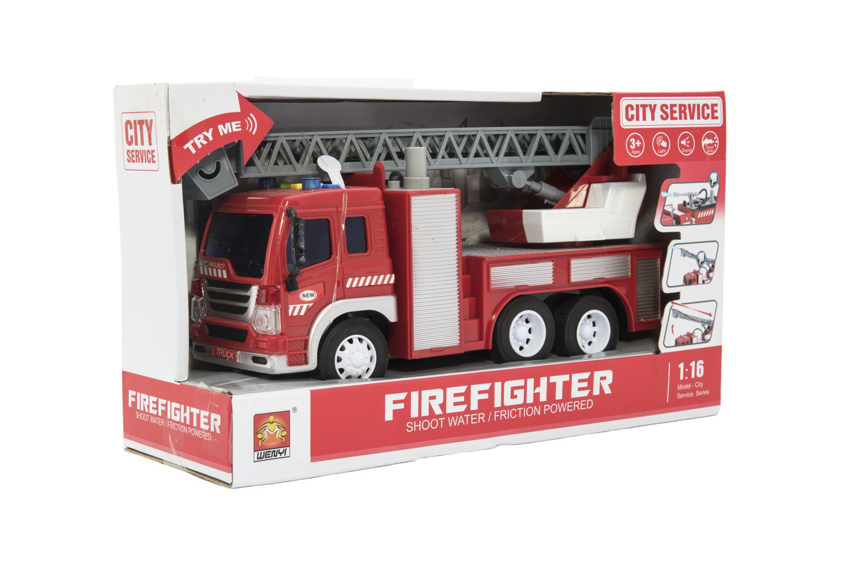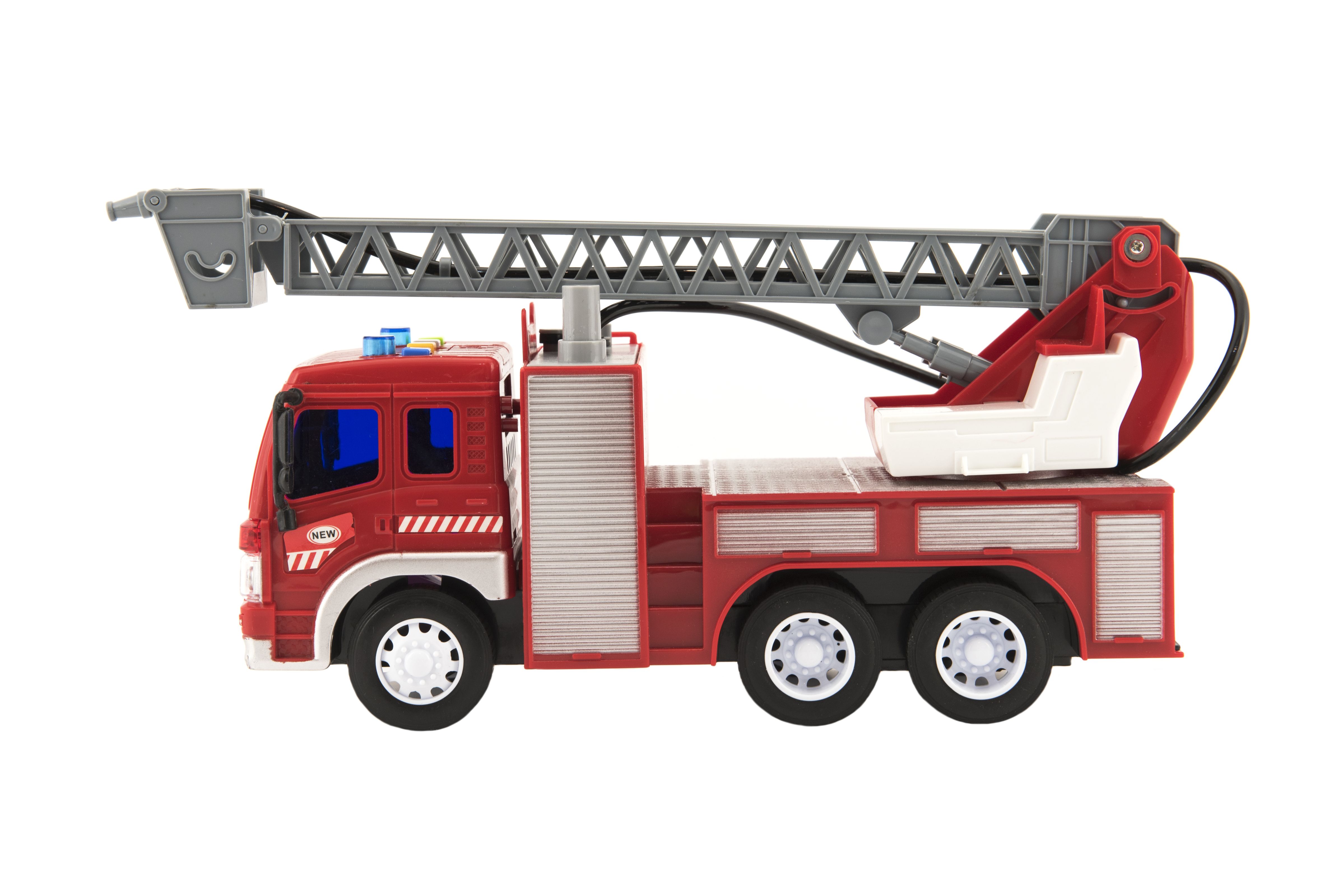 Plastové autíčko pro malé hasiče je vyrobeno z kvalitního plastu. Model jezdí na setrvačník, vydává zvuky a bliká. Auto má vysouvací žebřík a můžete stříkat vodu jako opravdový hasič. Kupte dětem hasičský vůz! Velikost dodávky je 30 cm. Baterie 3x AG13 jsou součástí balení a slouží pouze pro zkušební účely. Auto je vyrobeno z kvalitního a odolného plastu. Rozměry balení 32 x 18 x 12cm. Vhodné pro děti od 3 let.