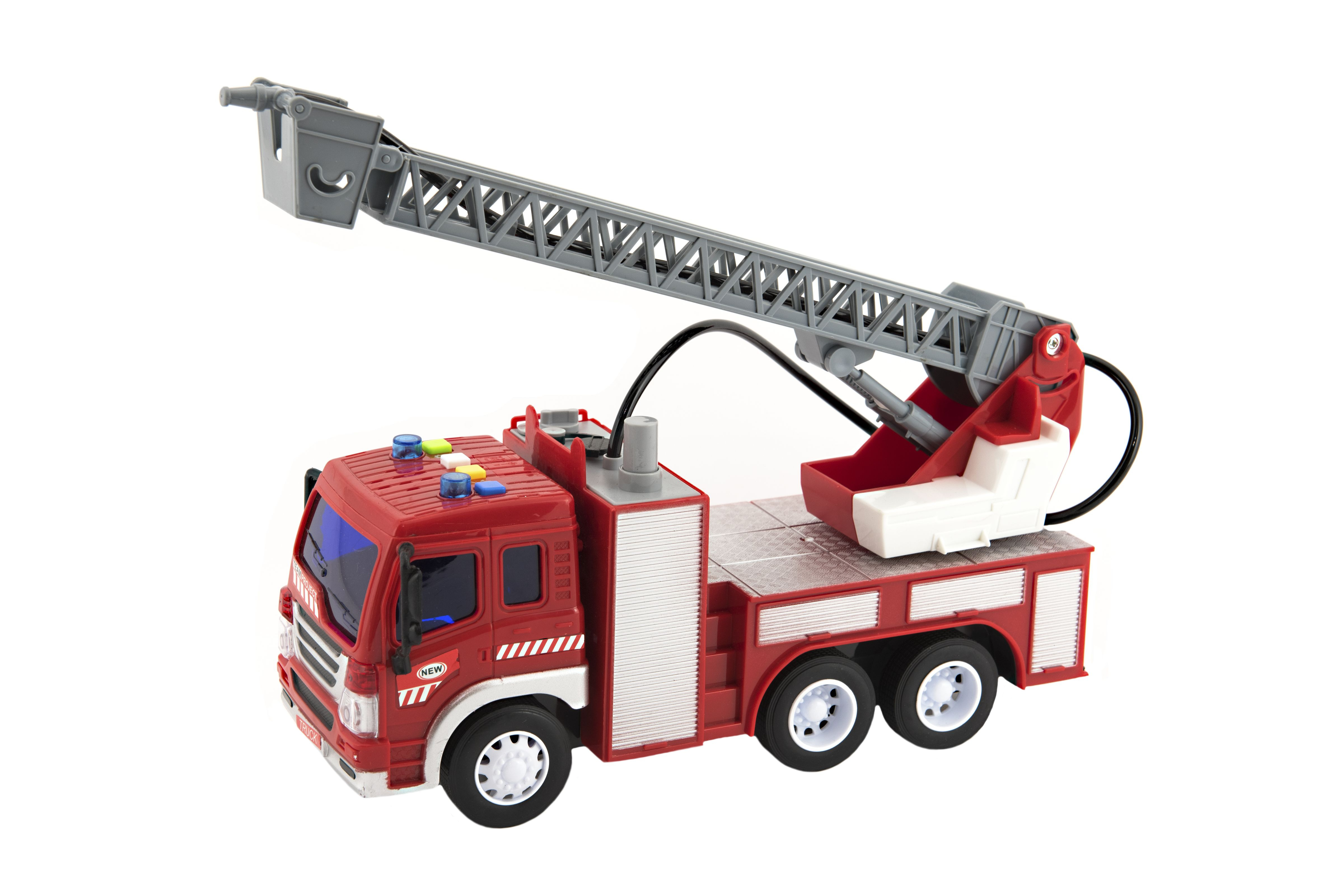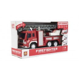 Auto hasiči stříkací vodu 30cm plast na setrvačník na bat. se zvukem se světlem v krabici 32x18x12cm