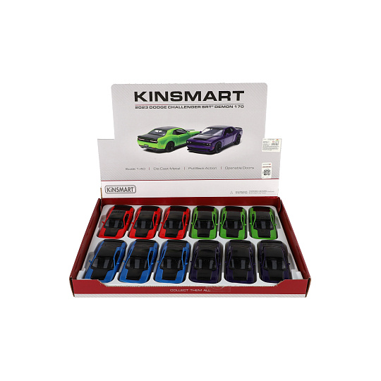 Síla a styl v dokonalém provedení! Tento kovový model Dodge Challenger SRT Demon 170 (2023) od značky Kinsmart přináší autentické zpracování ikonického amerického muscle caru. Vybaven zpětným natažením pro svižnou jízdu a otevíracími dveřmi, zaujme děti i dospělé fanoušky silných vozů. K dostání ve čtyřech výrazných barvách. Velikost auta: 13 cm Vhodné pro děti od 3 let