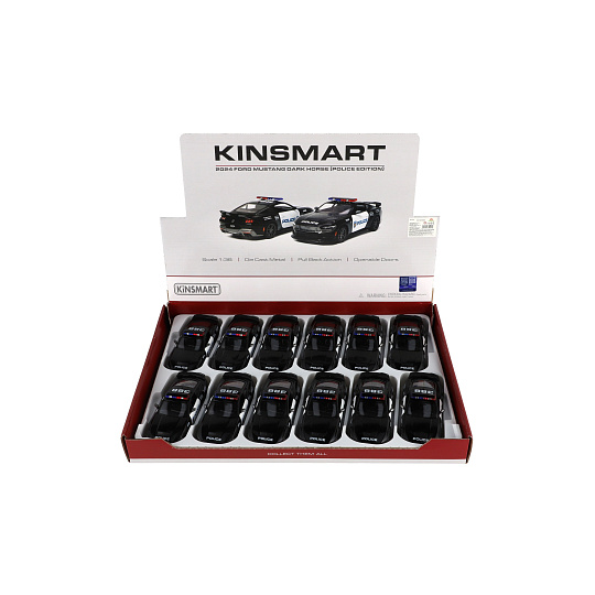 Teddies Auto Kinsmart 2024 Ford Mustang Dark Horse Policie 1:38 kov/plast 13cm na zpětné natažení