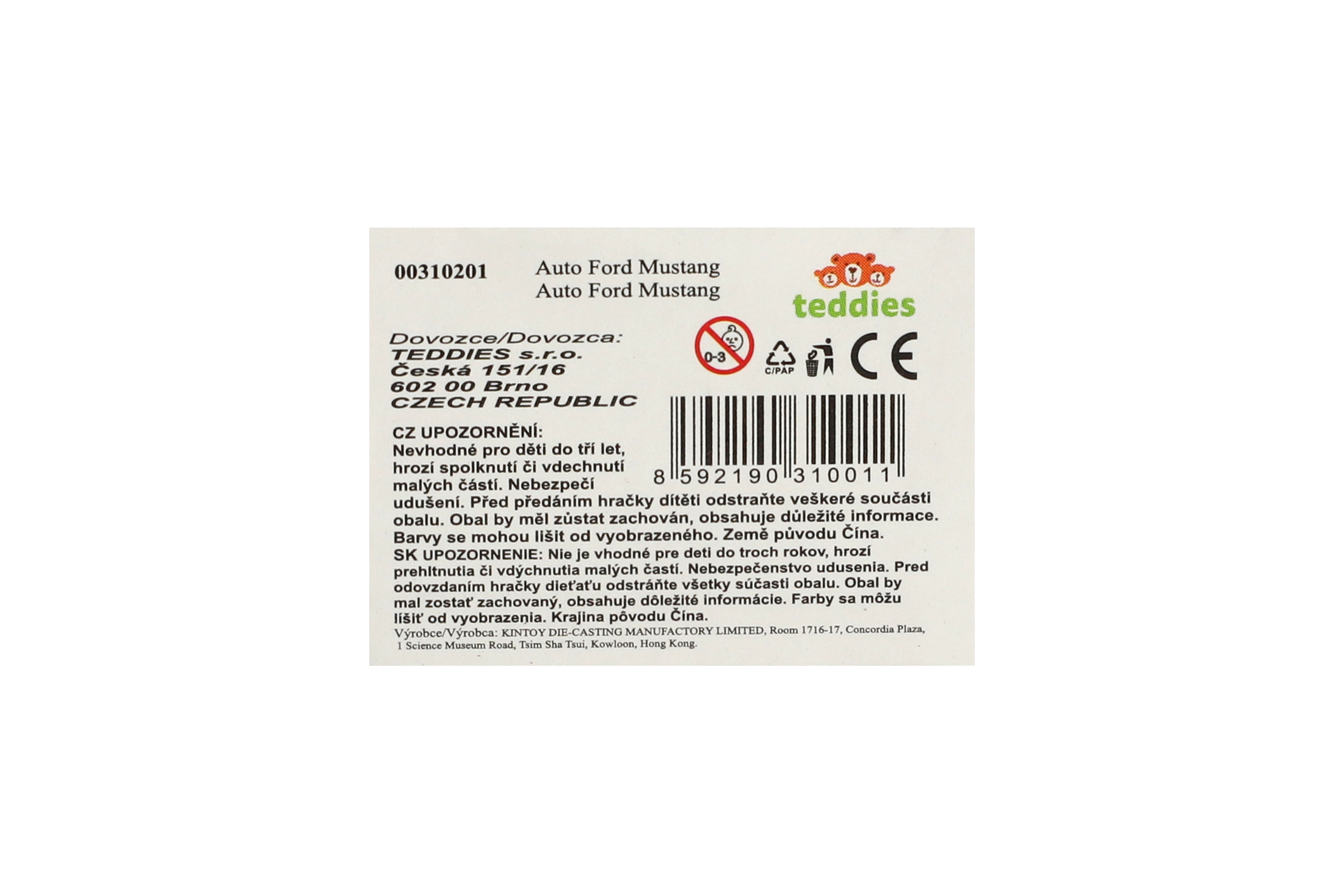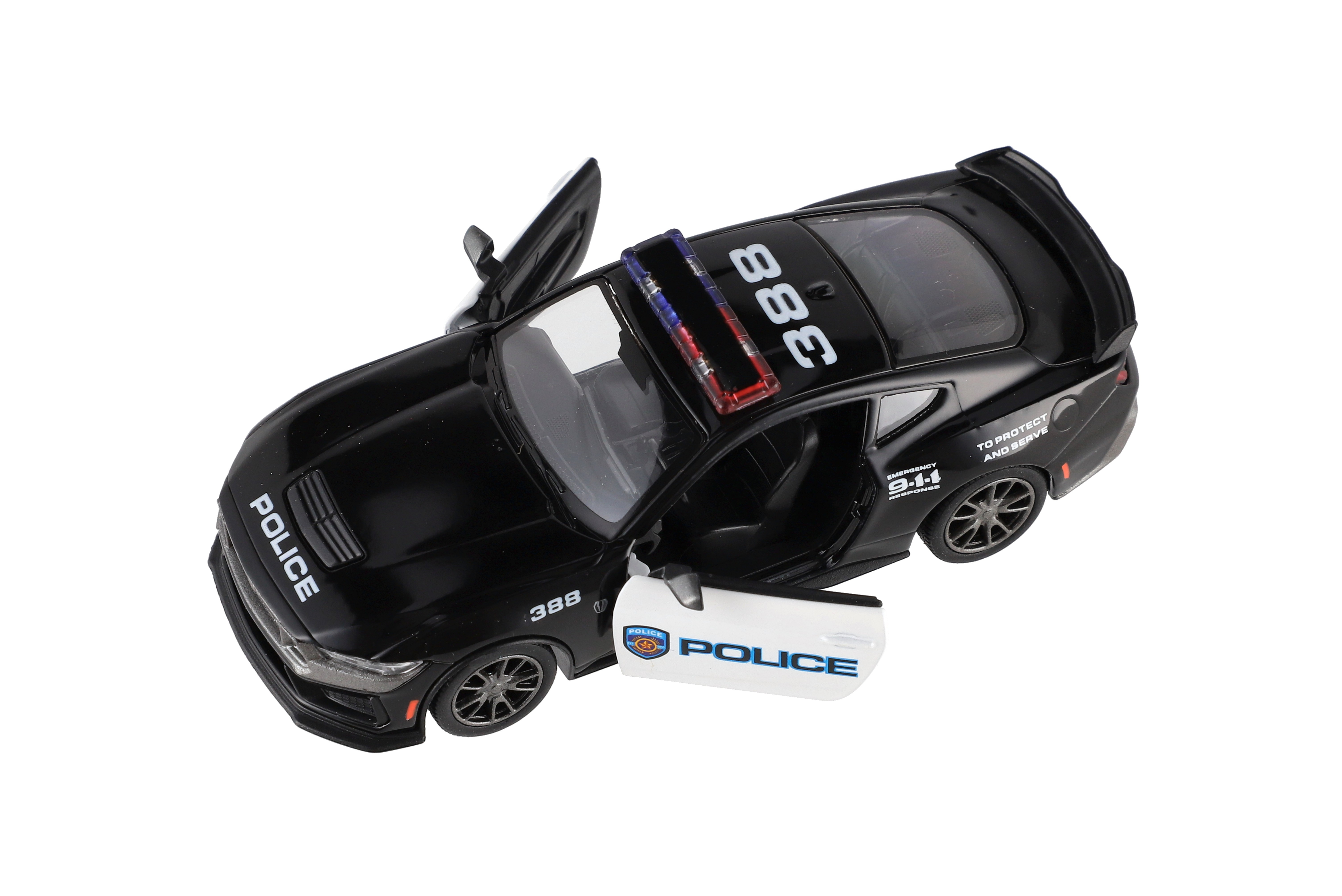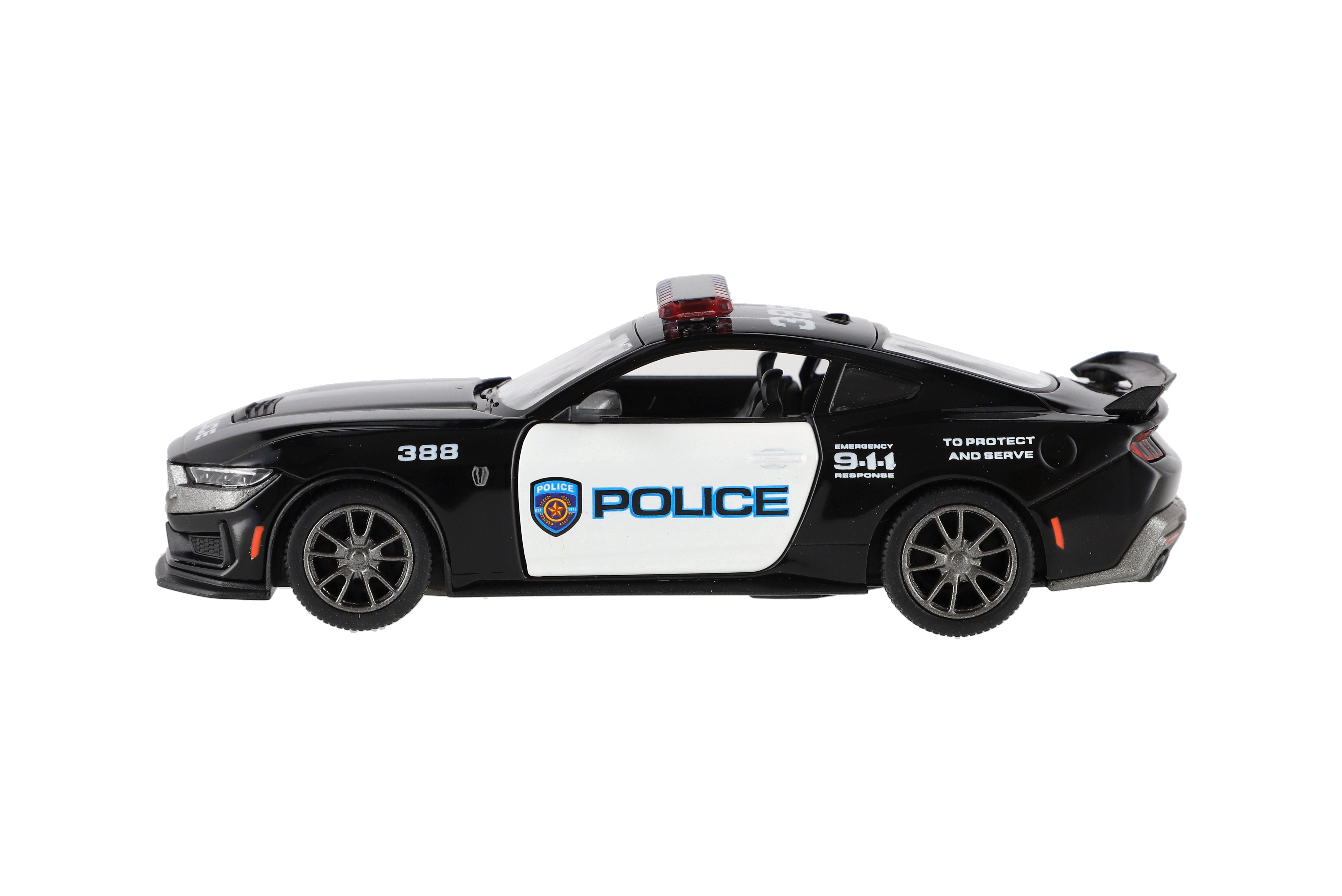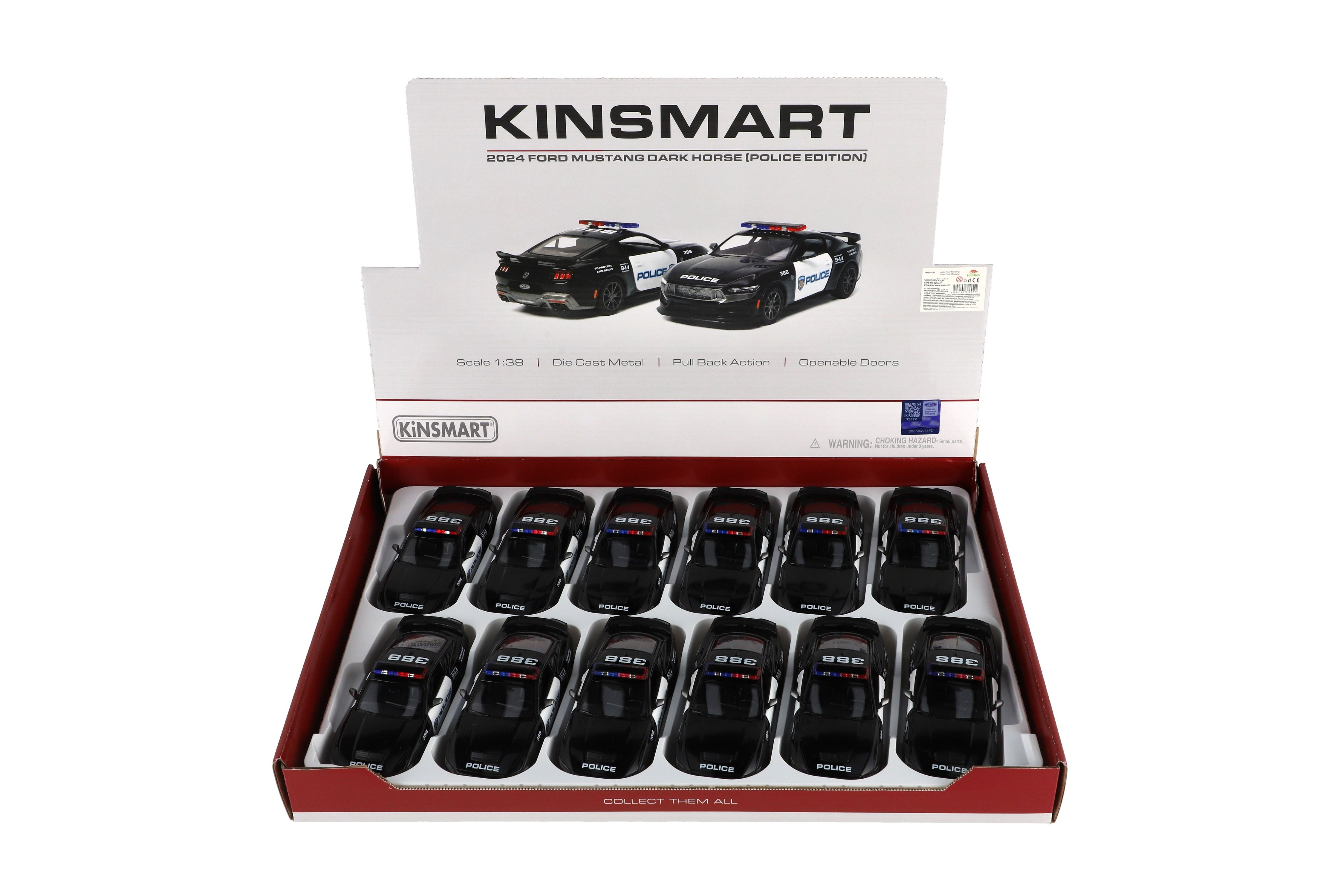 Teddies Auto Kinsmart 2024 Ford Mustang Dark Horse Policie 1:38 kov/plast 13cm na zpětné natažení
