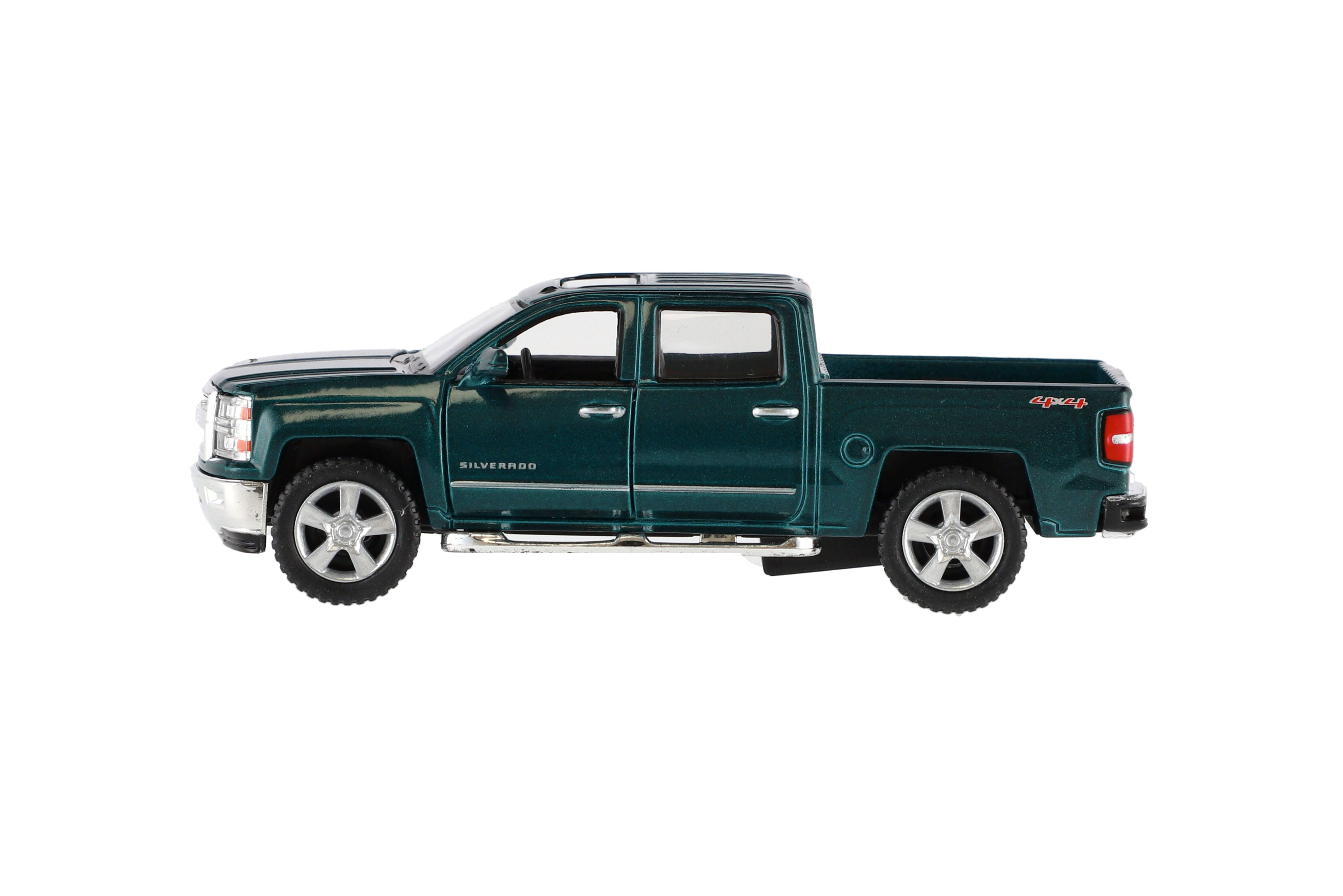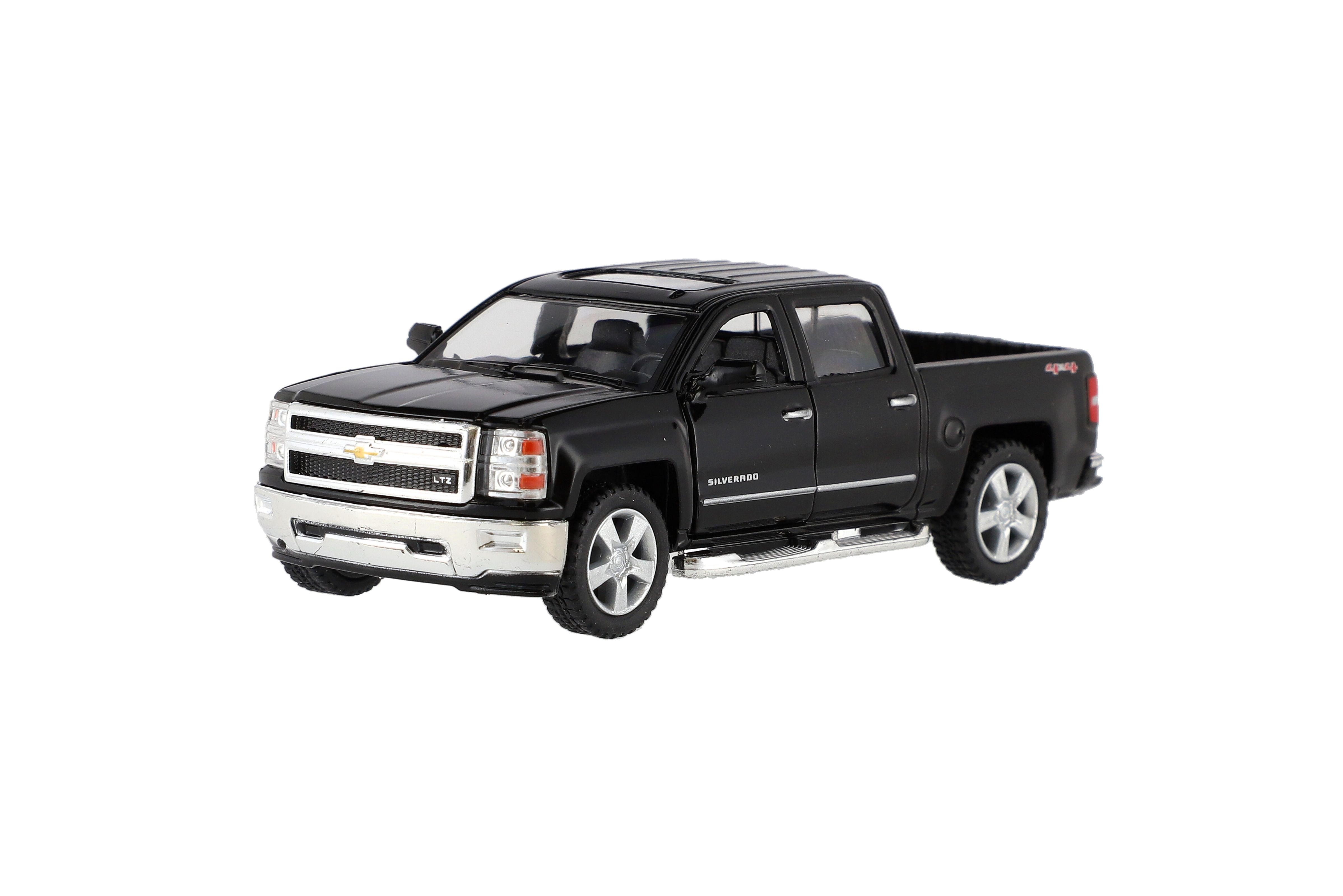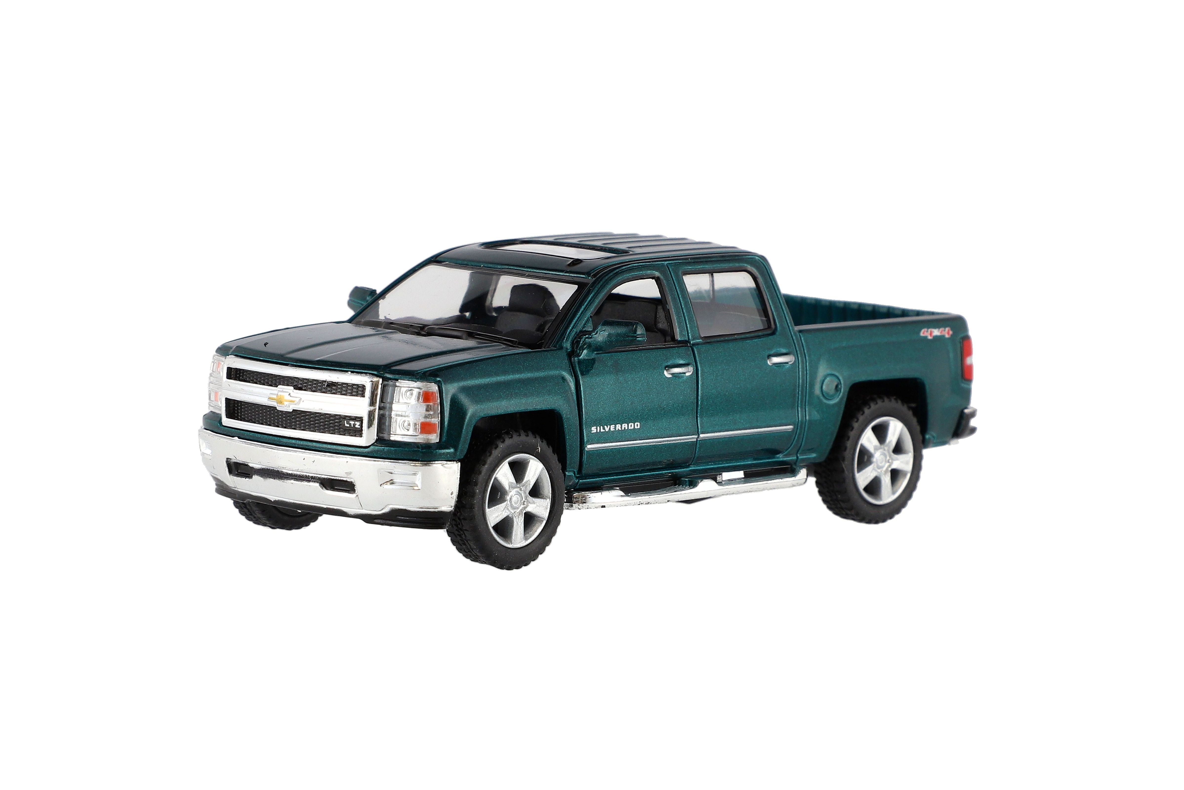 Krásný kovový model auta Chevrolet 2014 Solverado v měřítku 1:46. Autíčko má otevírací dveře a je na zpětné natažení. Dostupné ve čtyřech barevných variantách. Velikost auta je 13 cm. Vhodné pro děti od 3 let