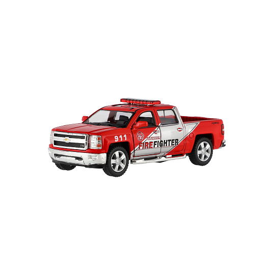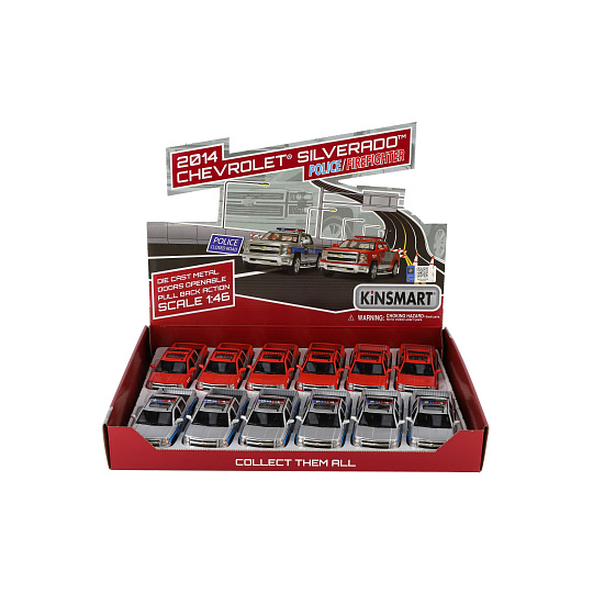 Teddies Auto Kinsmart Chevrolet 2014 Silverado Policie/Hasič kov/plast 13cm na zpětné nat.