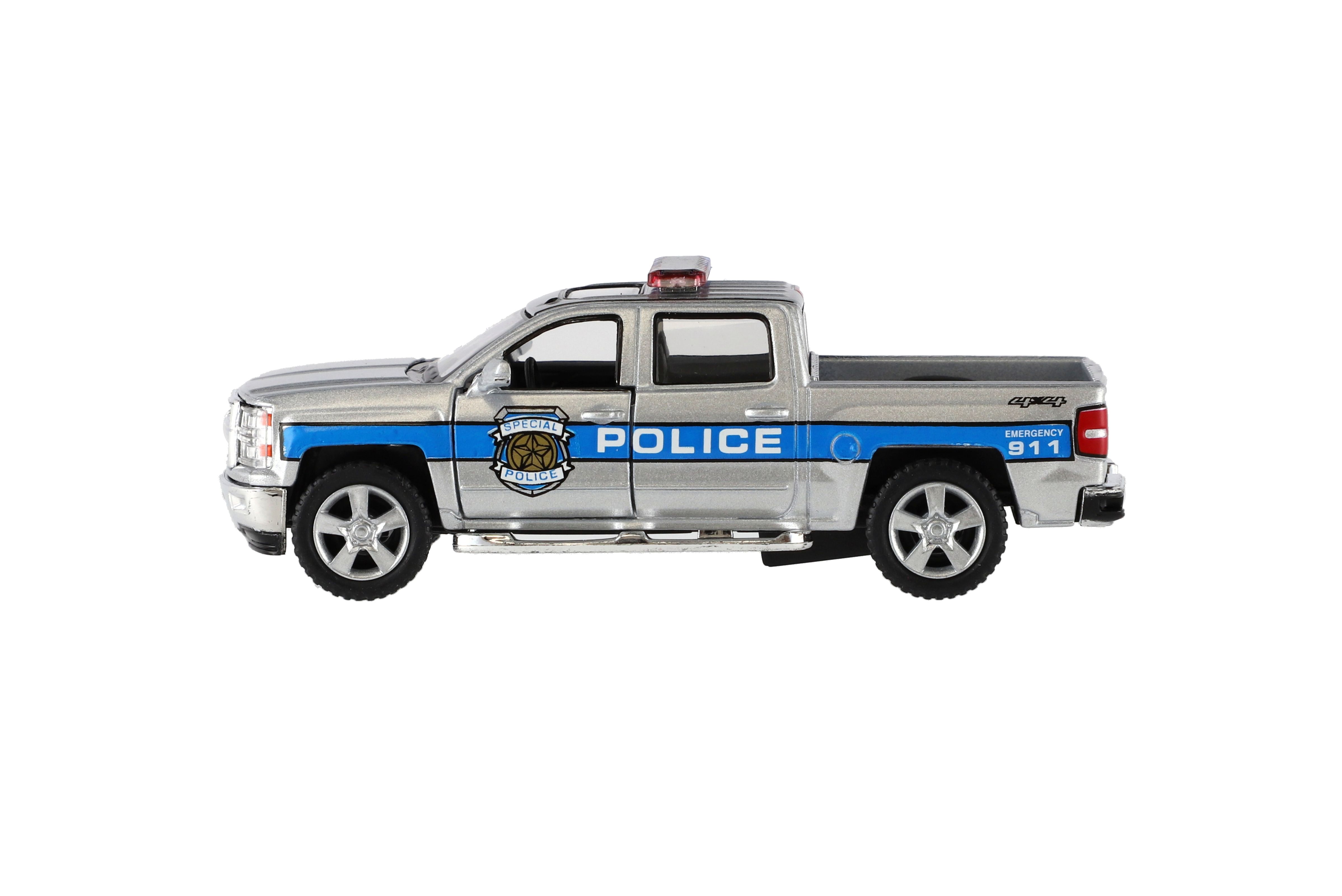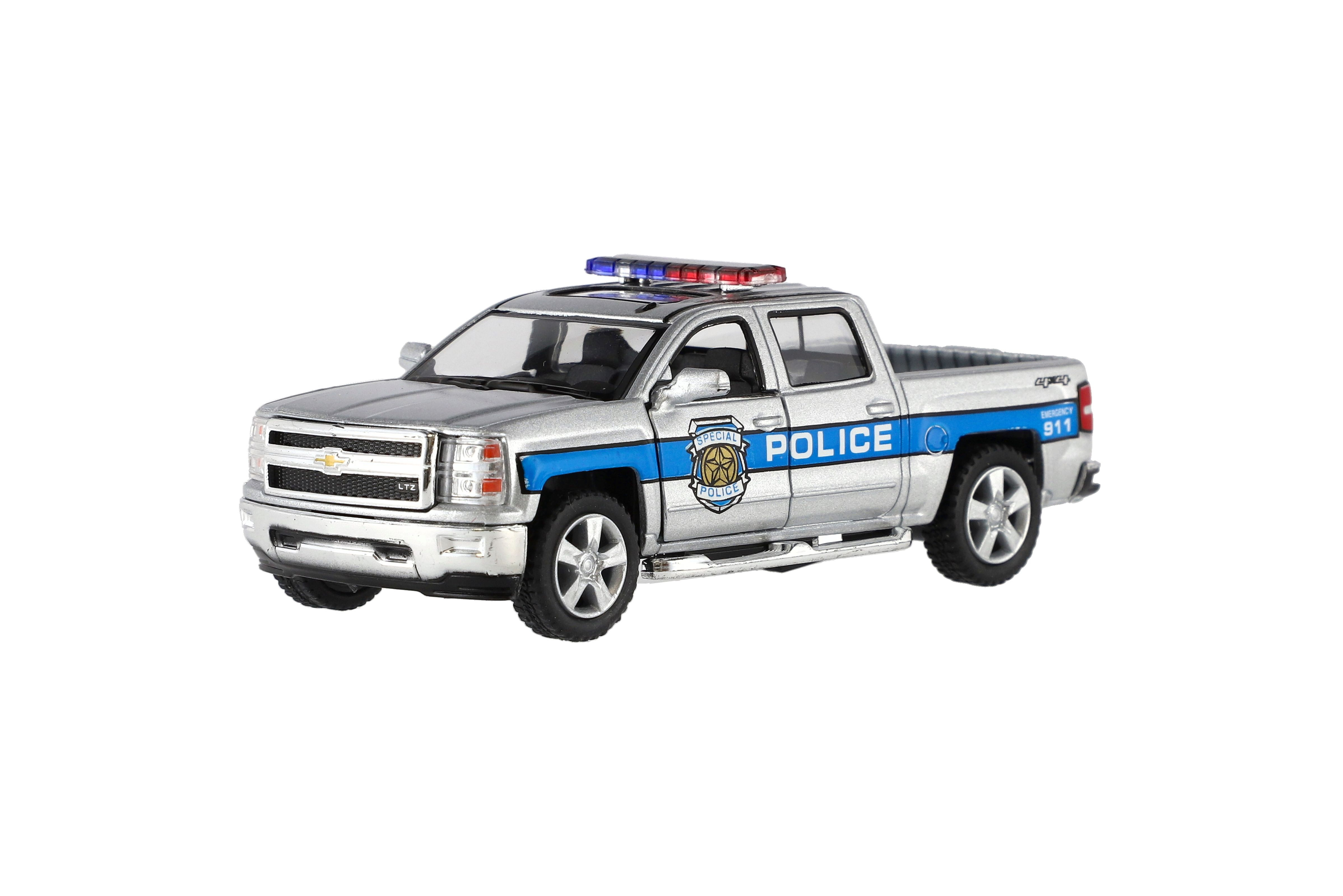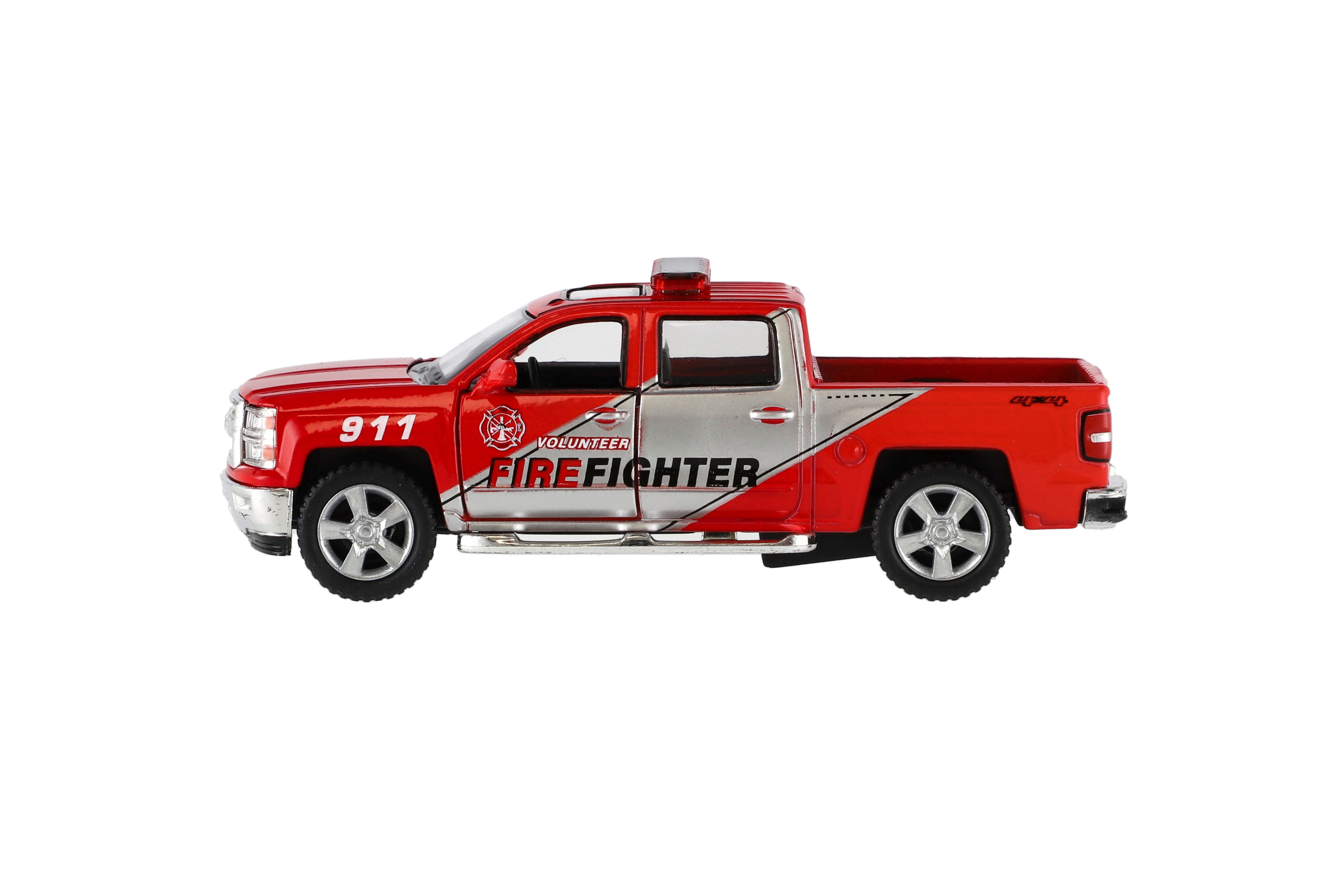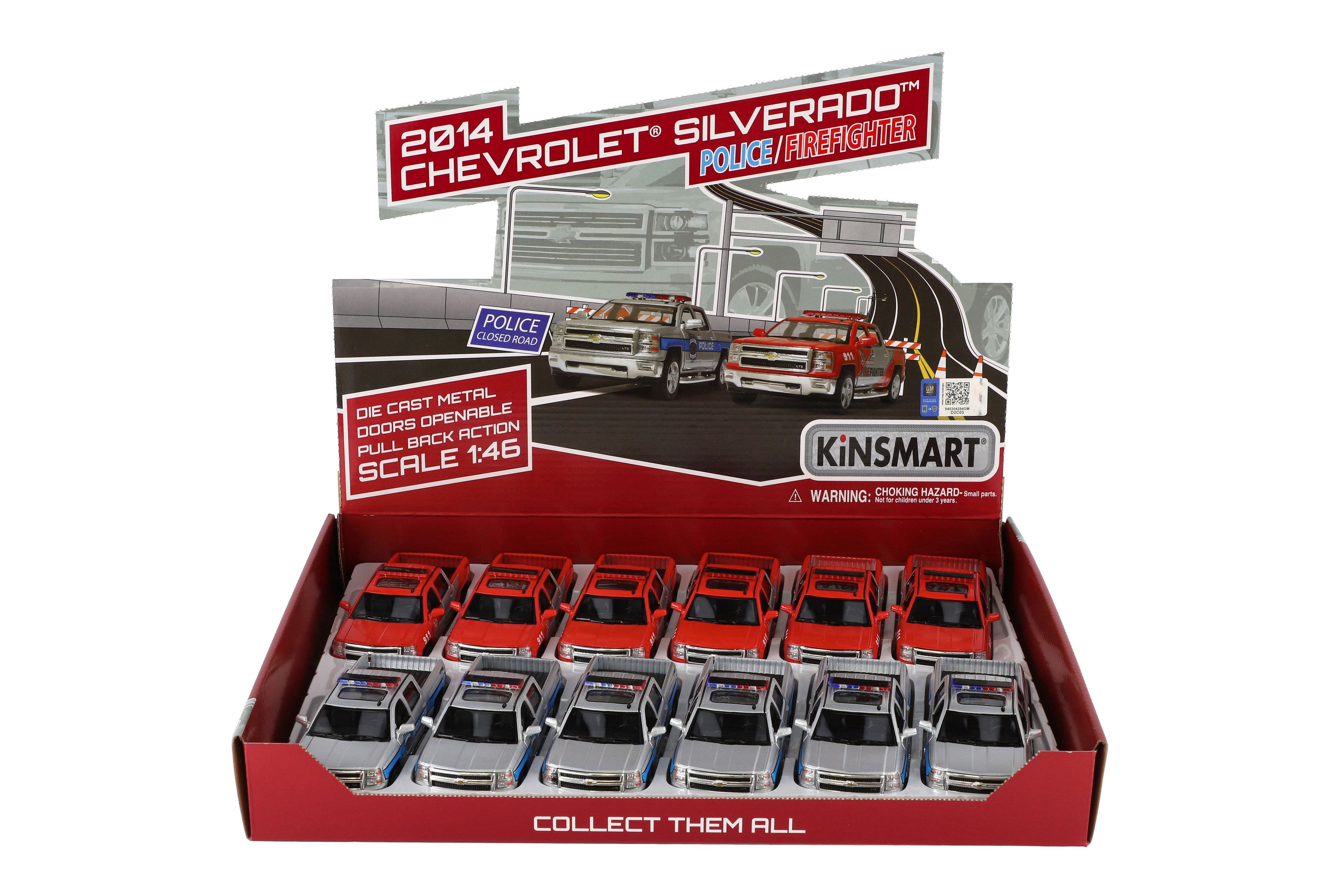 Teddies Auto Kinsmart Chevrolet 2014 Silverado Policie/Hasič kov/plast 13cm na zpětné nat.