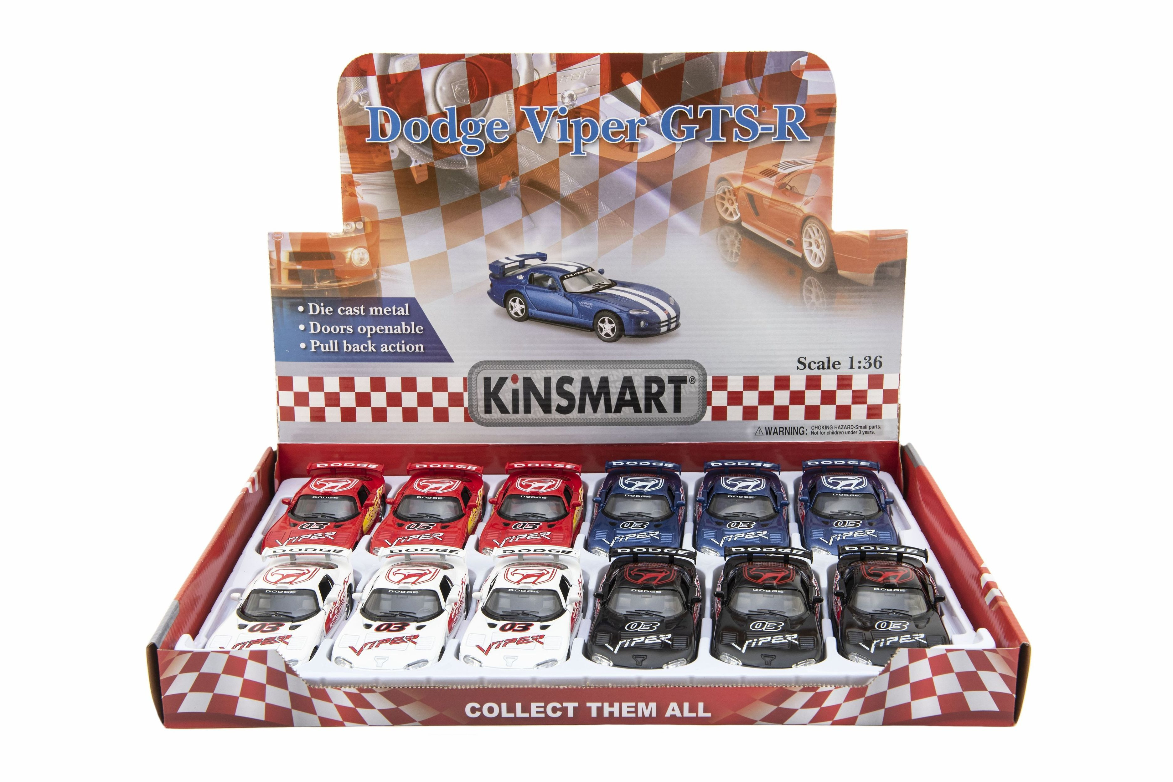 Krásný kovový model autíčka Dodge Viper GTS-R v měřítku 1:36. Autíčko má otevírací dveře a je na zpětné natažení. Dostupné ve čtyřech barevných variantách. Rozměry výrobku 13 x 6 x 3 cm. Vhodné pro děti od 3 let.