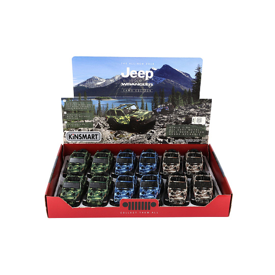 Krásný kovový model auta Jeep Wrangler Camo Edition 1:34. Autíčko má otevírací dveře a je na zpětné natažení. Dostupné ve třech barevných variantách. Velikost auta je 13 cm. Vhodné pro děti od 3 let