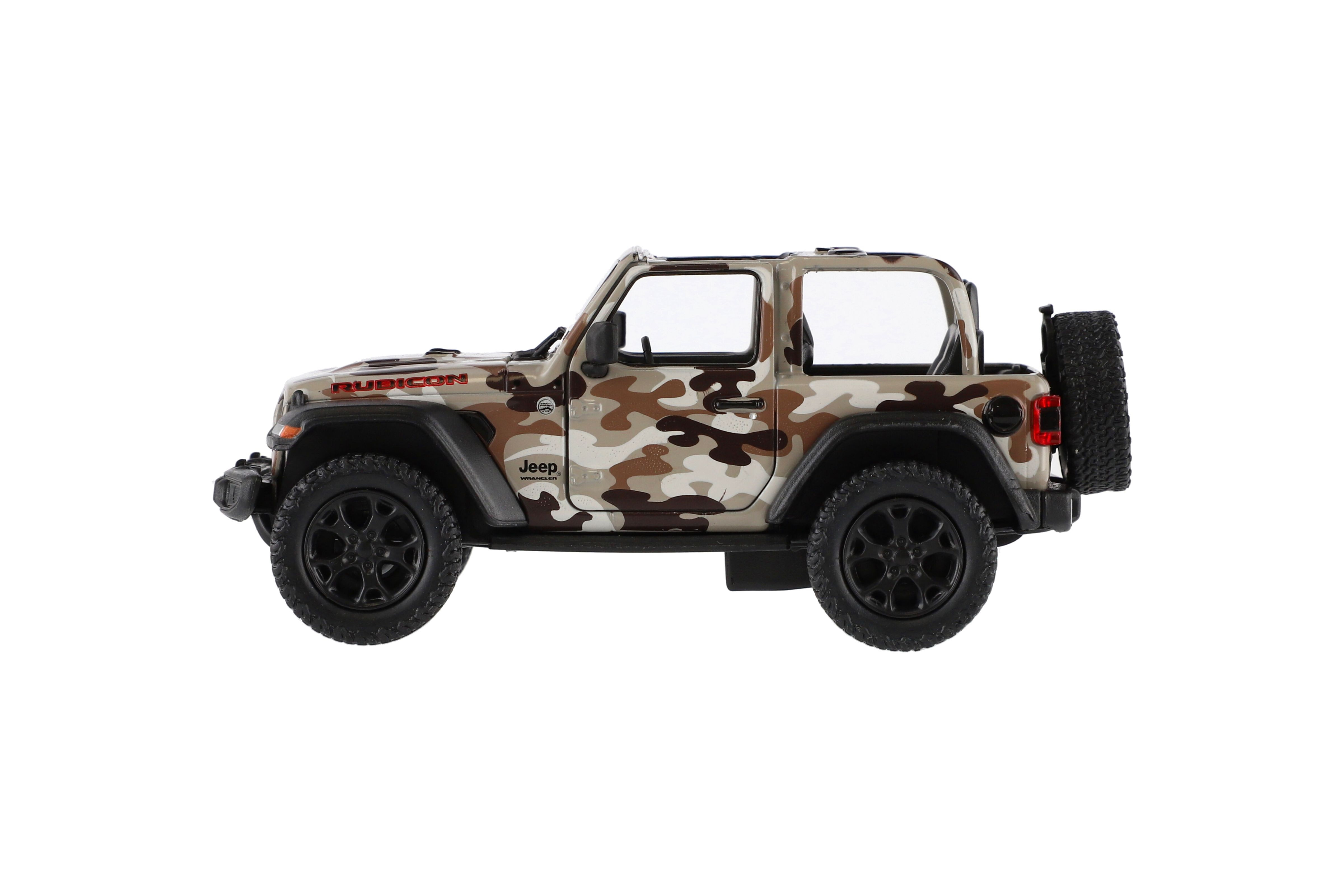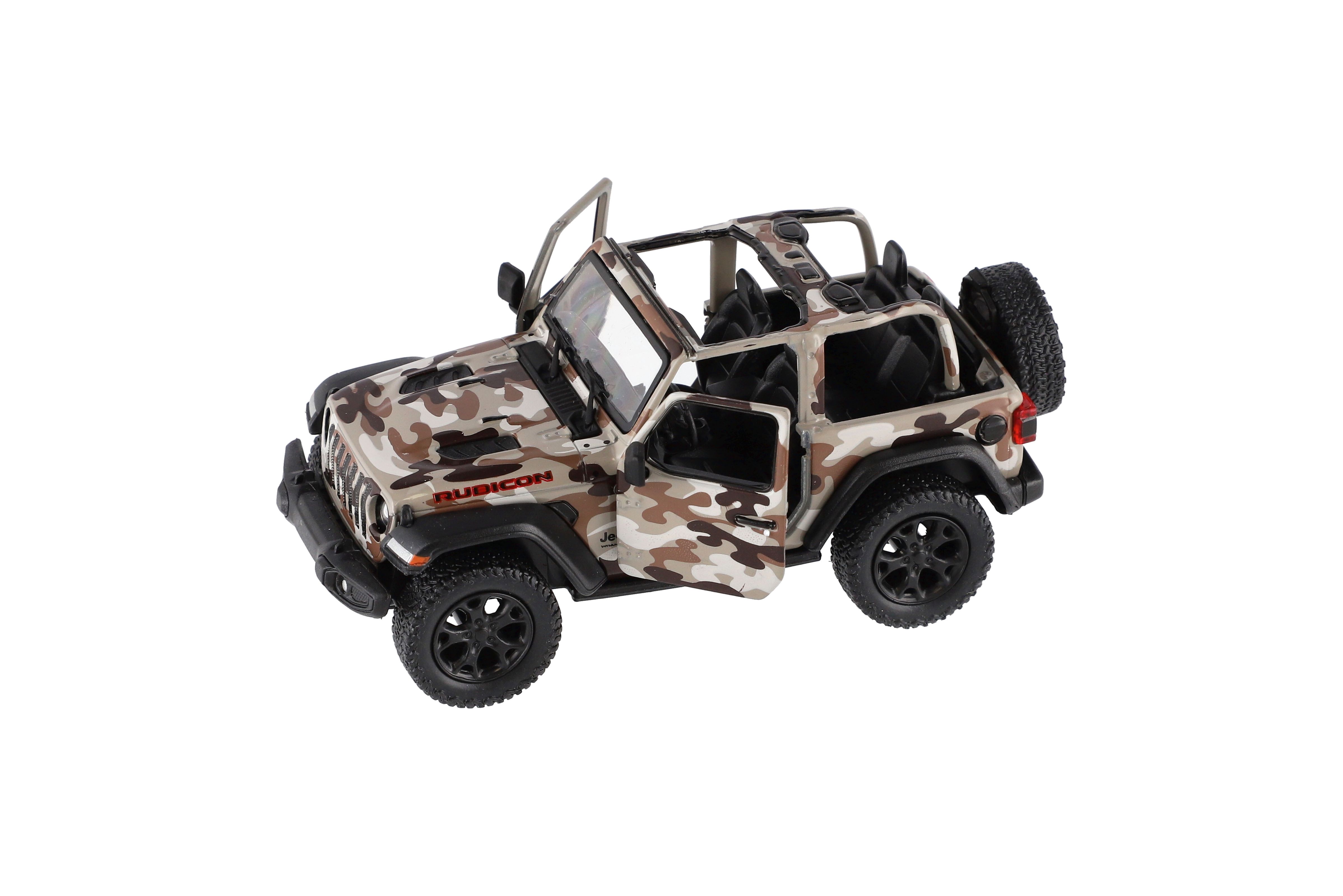Krásný kovový model auta Jeep Wrangler Camo Edition 1:34. Autíčko má otevírací dveře a je na zpětné natažení. Dostupné ve třech barevných variantách. Velikost auta je 13 cm. Vhodné pro děti od 3 let