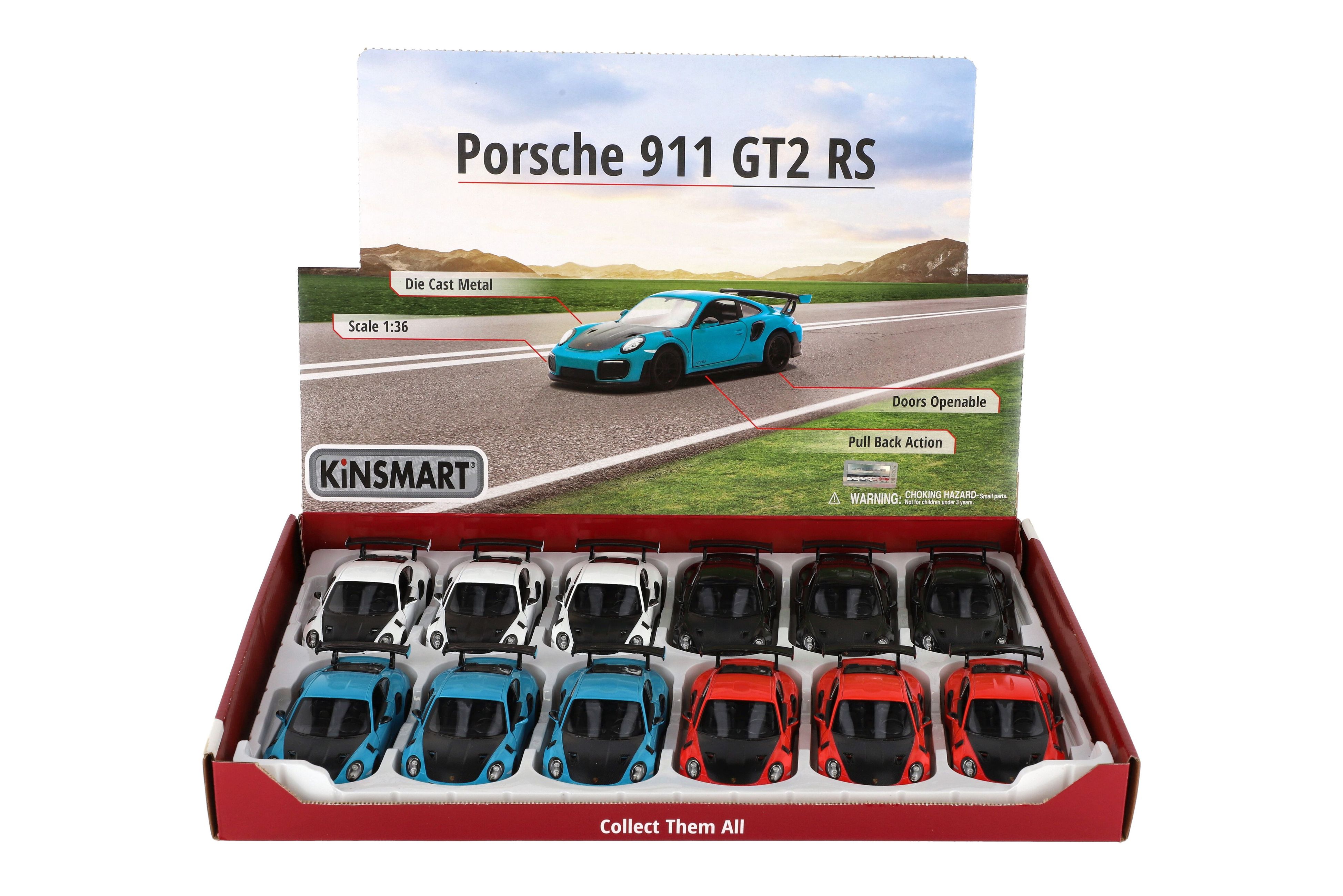 Krásný kovový model auta Porsche 911 GT2 RS v měřítku 1:36. Autíčko má otevírací dveře a je na zpětné natažení. Dostupné ve čtyřech barevných variantách. Velikost auta je 13 cm. Vhodné pro děti od 3 let