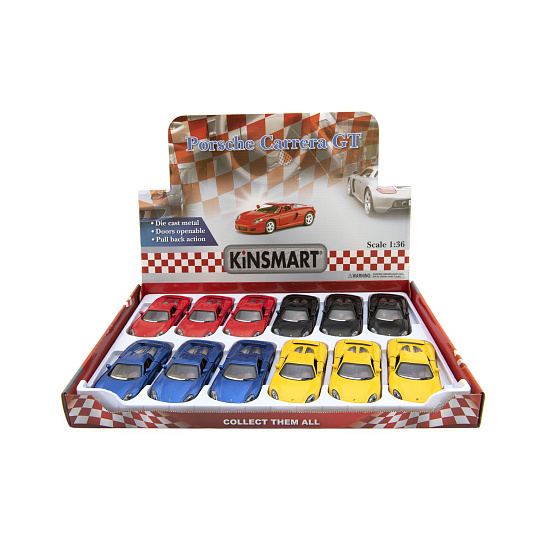 Teddies Auto Kinsmart Porsche Carrera GT 1:36 12,5cm kov/plast 4 barvy na zpětné natažení