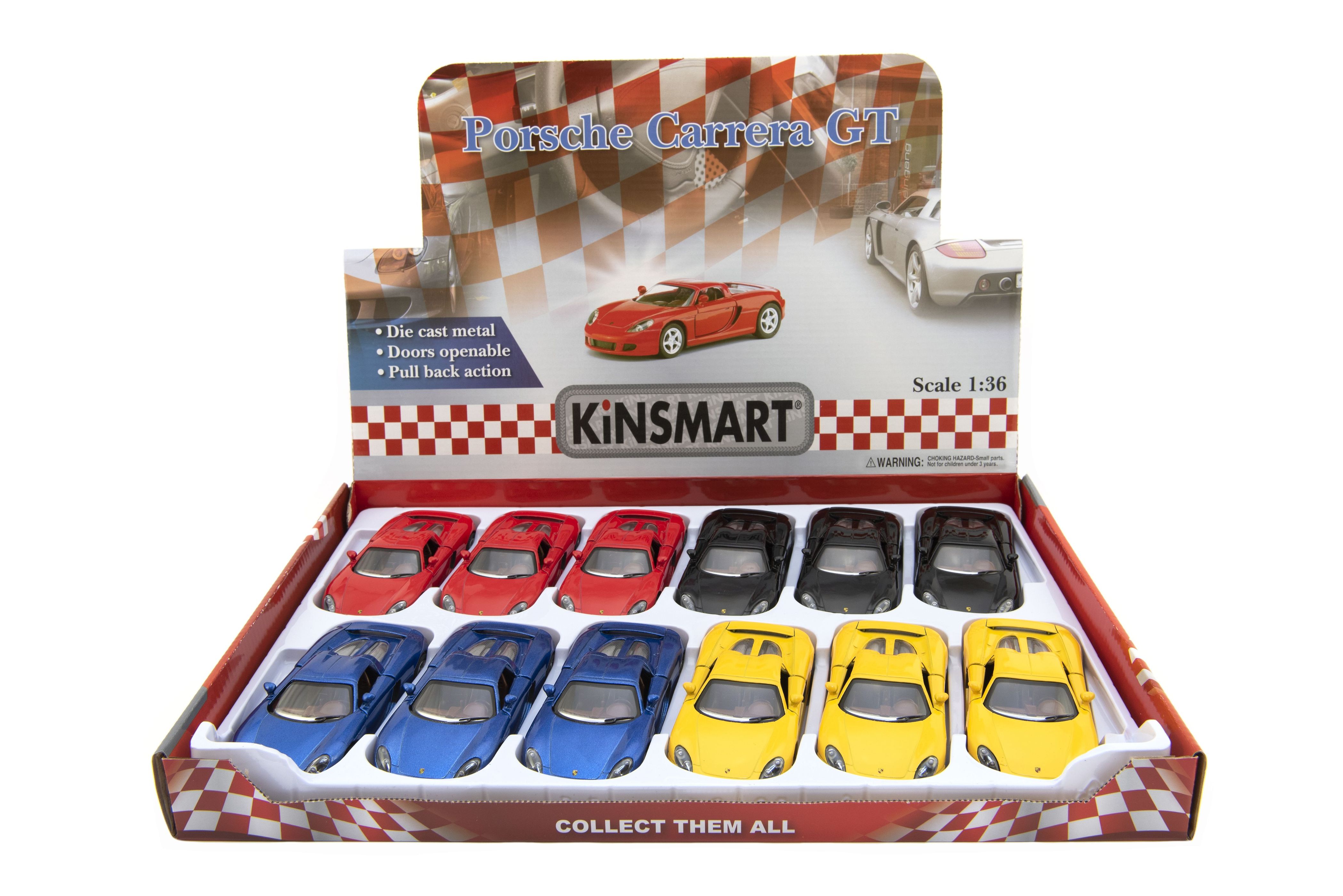Teddies Auto Kinsmart Porsche Carrera GT 1:36 12,5cm kov/plast 4 barvy na zpětné natažení
