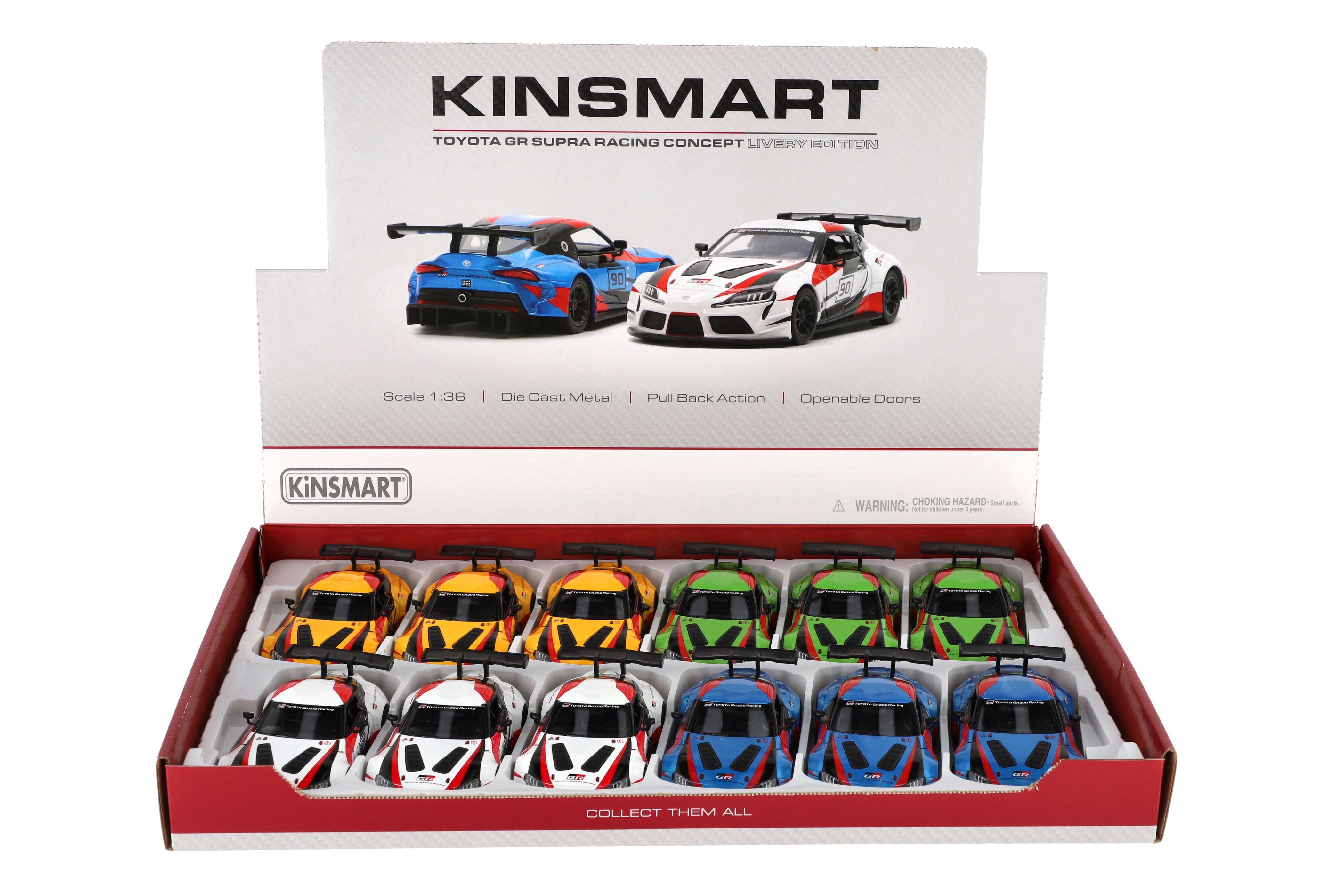 Teddies Auto Kinsmart Toyota GR Supra Racing kov 13cm 4 barvy na zpětné natažení