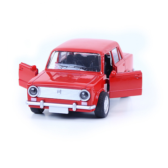 Parádní kovové auto na zpětný setrvačník, má otevírací dveře a jeho délka je cca 12 cm. Tato hračka vychází z původního modelu Fiat 124 / Seat 124.
