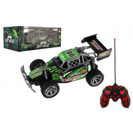 Auto RC Buggy rychlostní plast 23cm 27MHz na baterie zelené v krabici 35x13,5x18cm